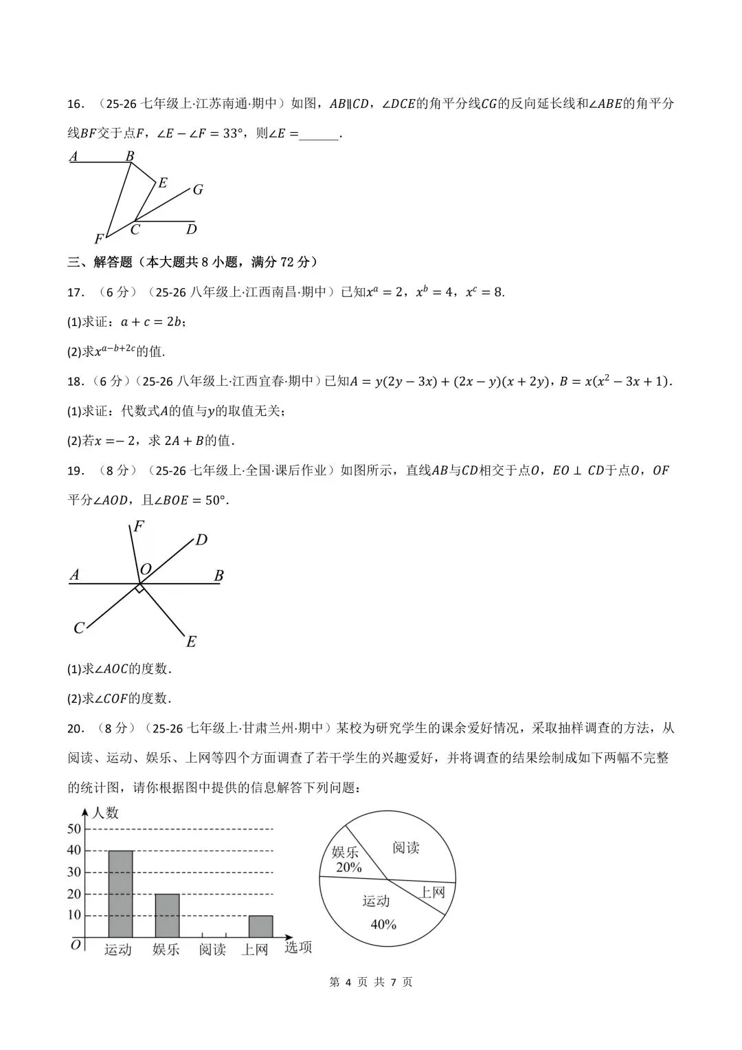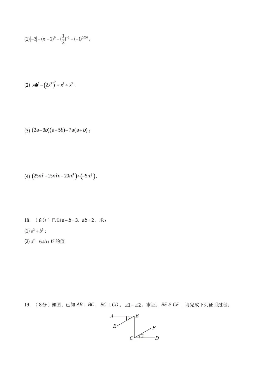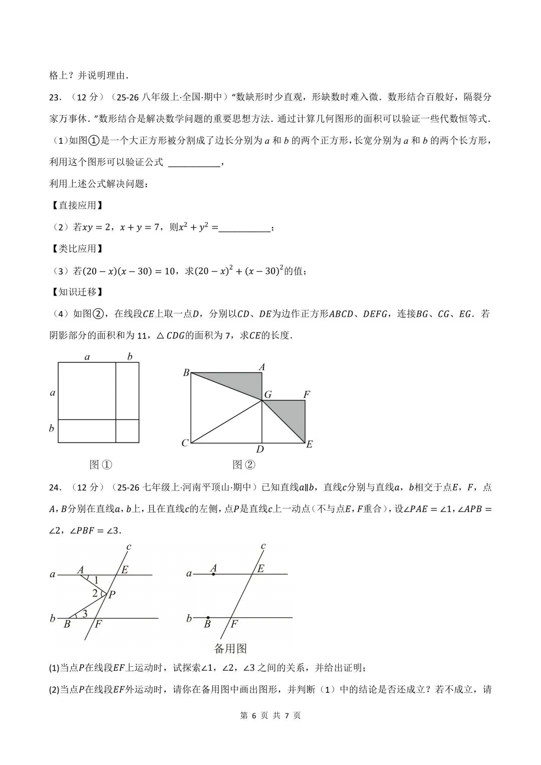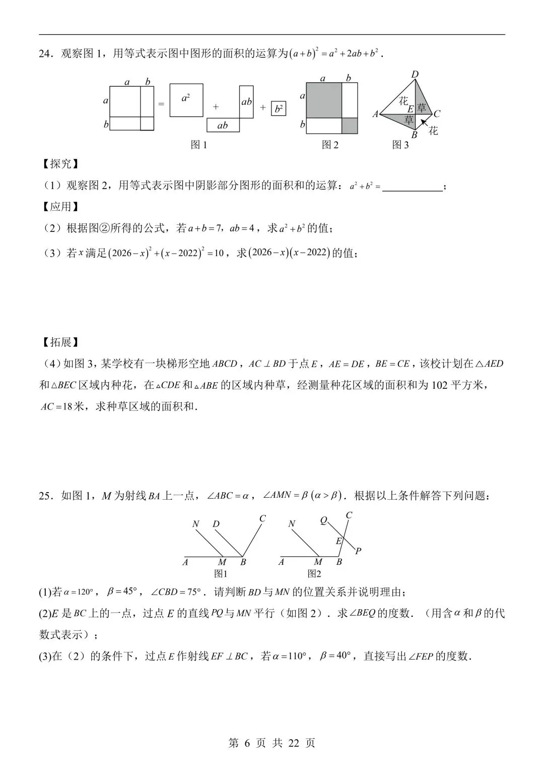 期中试卷|2026年北师大版七年级下册数学期中真题模拟测试卷(6套含答案)电子版可打印。