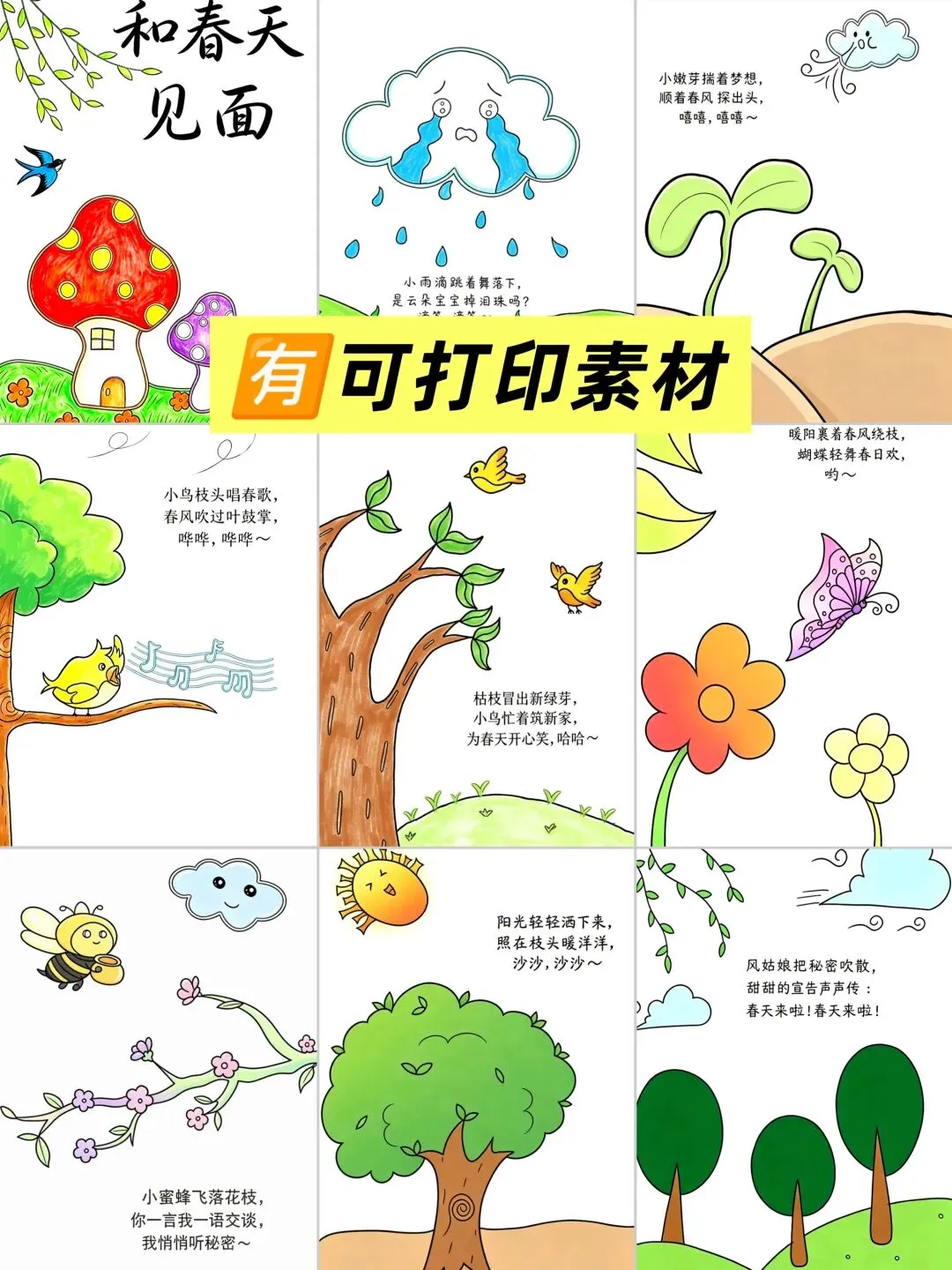 不管是幼儿园手工课、家庭亲子绘画活动,还是孩子日常涂色启蒙,这套素材都超实用,打印出来就能用,省心又好玩,让孩子一边读绘本,一边画画,沉浸式玩转春天!