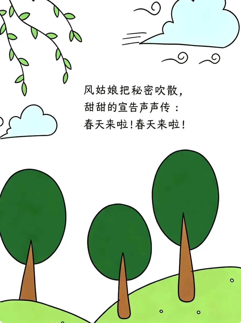 ✅ 彩色参考图:色彩鲜艳柔和,完美还原绘本里的春日场景,小朋友可以直观感受春天的色彩搭配,看着图片就能读懂绘本故事,加深对春日元素的认知。