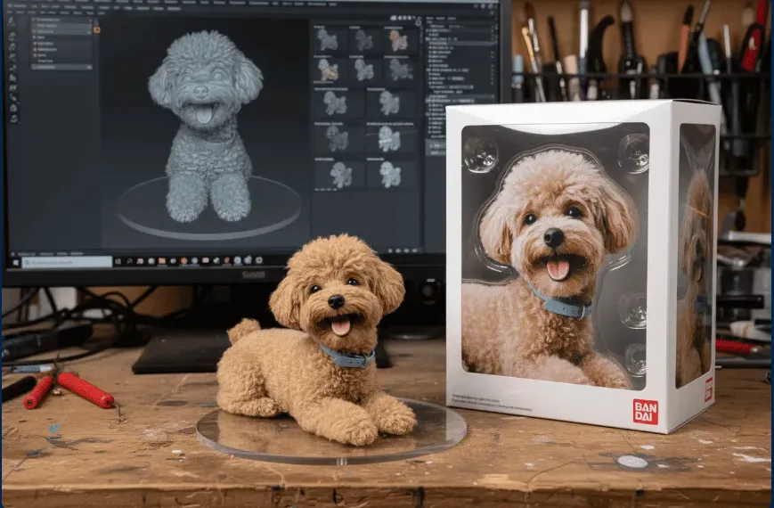 只需要上传图片,AI就能自动生成商用级别的手办成品展示图 -