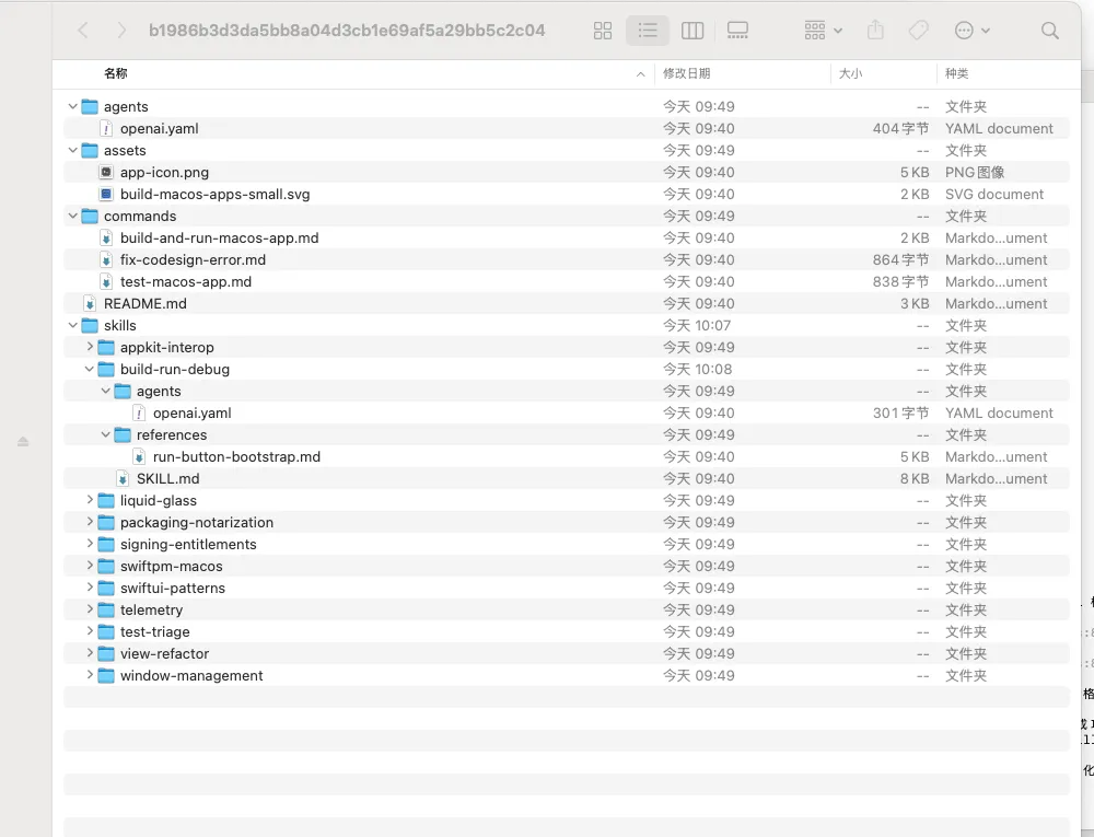 这段目录里放的是 Codex 官方挑选并同步到本机的那批插件。每个插件下面还有一层 skills/。我原本以为会看到“架构师”“测试负责人”“部署专家”这类名字,结果没有。
