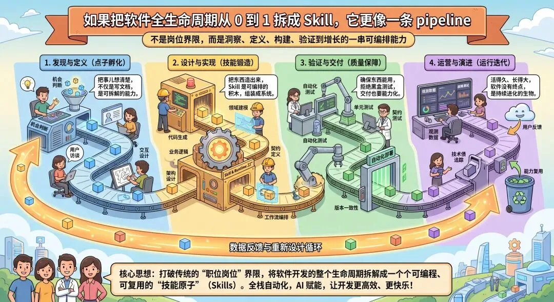 真正对外体现为生产力的,不是某一个 Skill,而是三者共同形成的 skills pipeline。