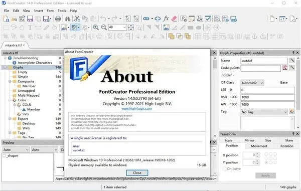 8、至此,FontCreator Pro软件即为安装注册成功!