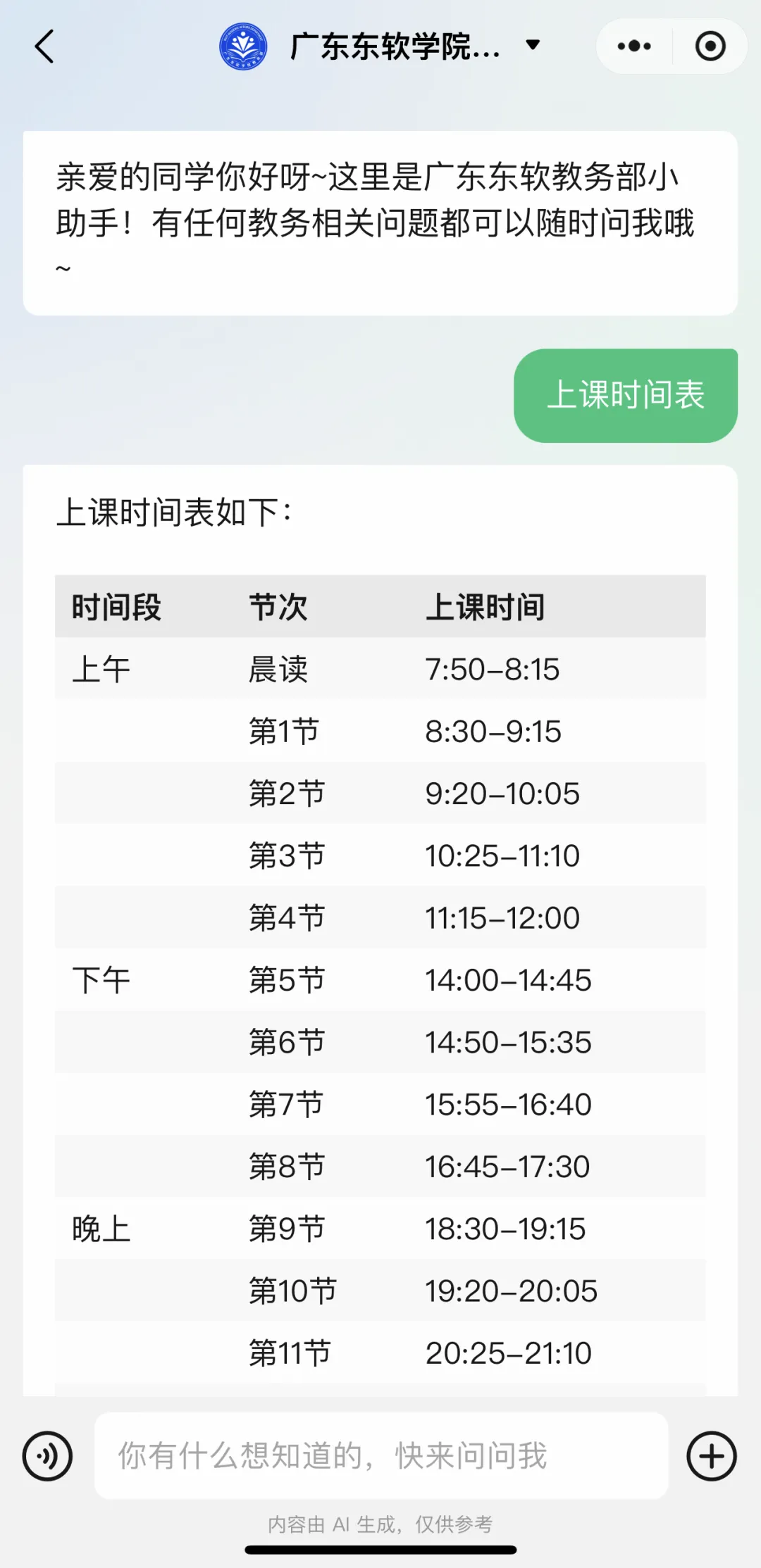 广东东软学院教务智能AI助手,全程为您服务~