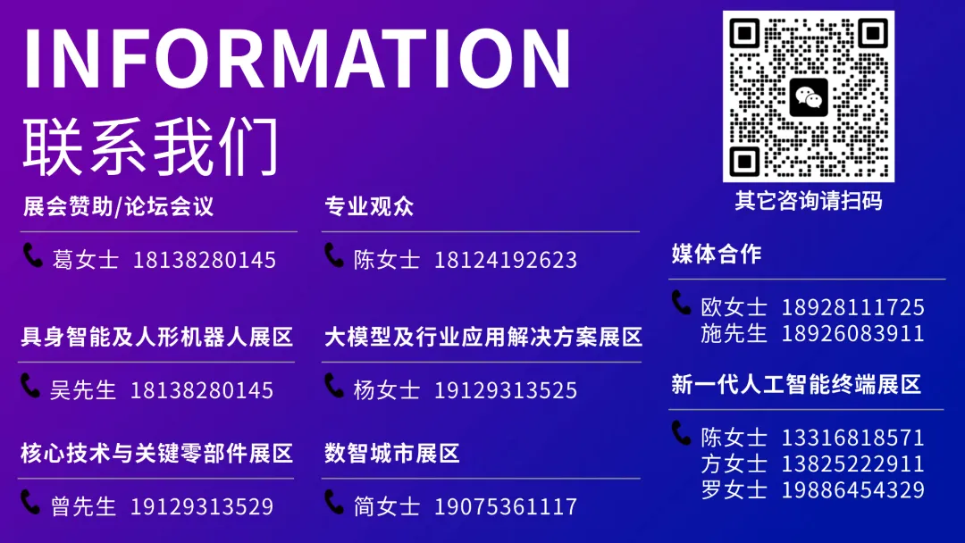 本届展会展览面积达30,000平方米,设置新一代人工智能终端、具身智能及人形机器人、大模型及行业应用解决方案、核心技术与关键零部件、数智城市、创新创业六大核心展区。作为聚焦人工智能全生态链的专业展会,本届展会将深度聚焦终端产品的技术落地与产业协同,全方位解码人工智能与人工智能终端产业从底层技术突破到顶层场景应用的完整生态图谱,为行业呈现一场深度与广度兼具的价值盛宴。