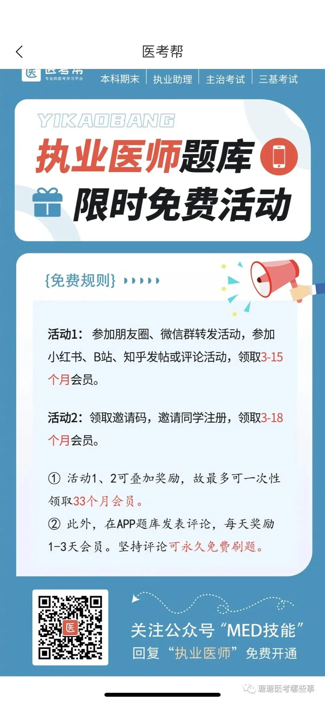 优点:同医考帮提供免费的学科真题,这些真题按学科、章节和年份进行分类。每道题下都有大神评论,非常适合在日常章节学习后进行巩固练习和系统测评。