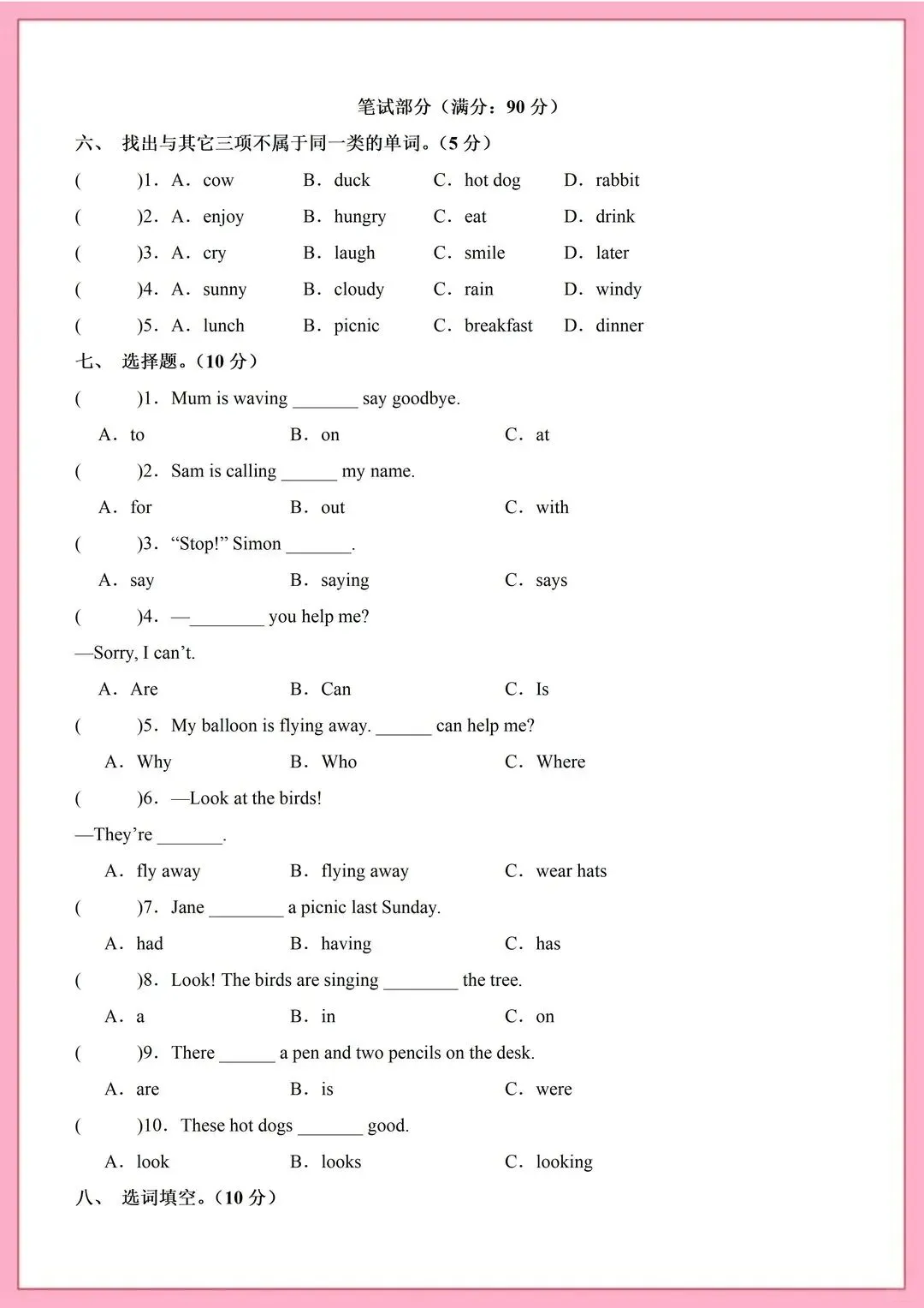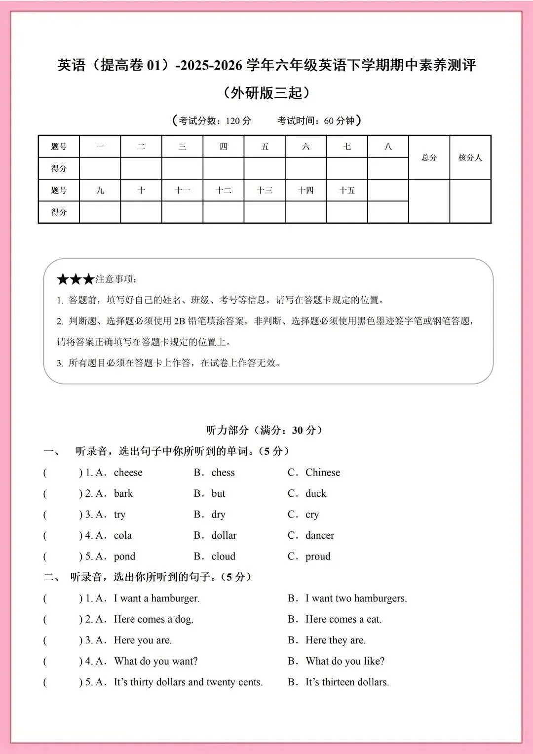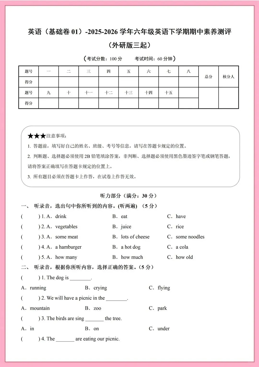 2026春外研版小学六年级下册英语【期中考试测试卷】有听力答案共9套(可打印)