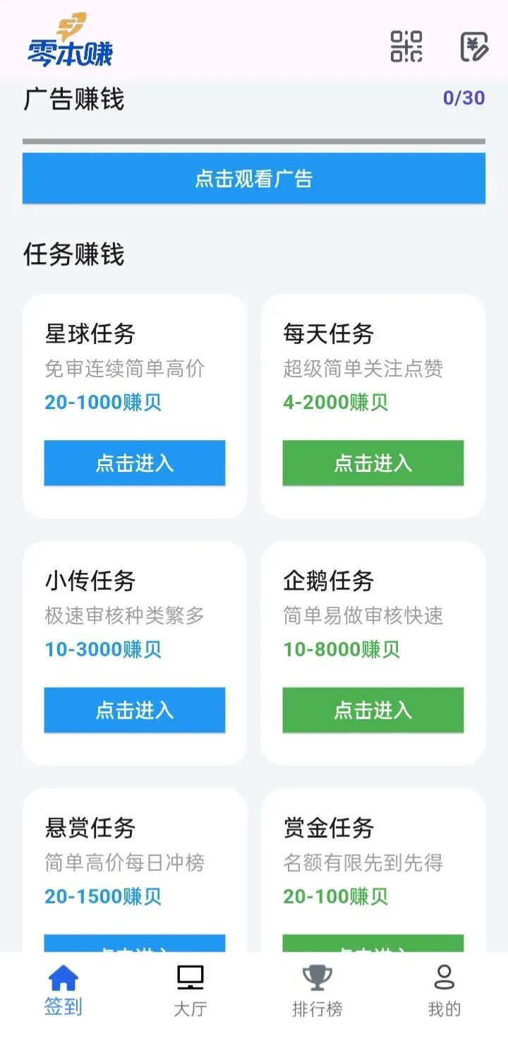 看广告挣钱,做任务挣钱,玩游戏挣钱,阅读挣钱,文末有零本赚App下载链接。