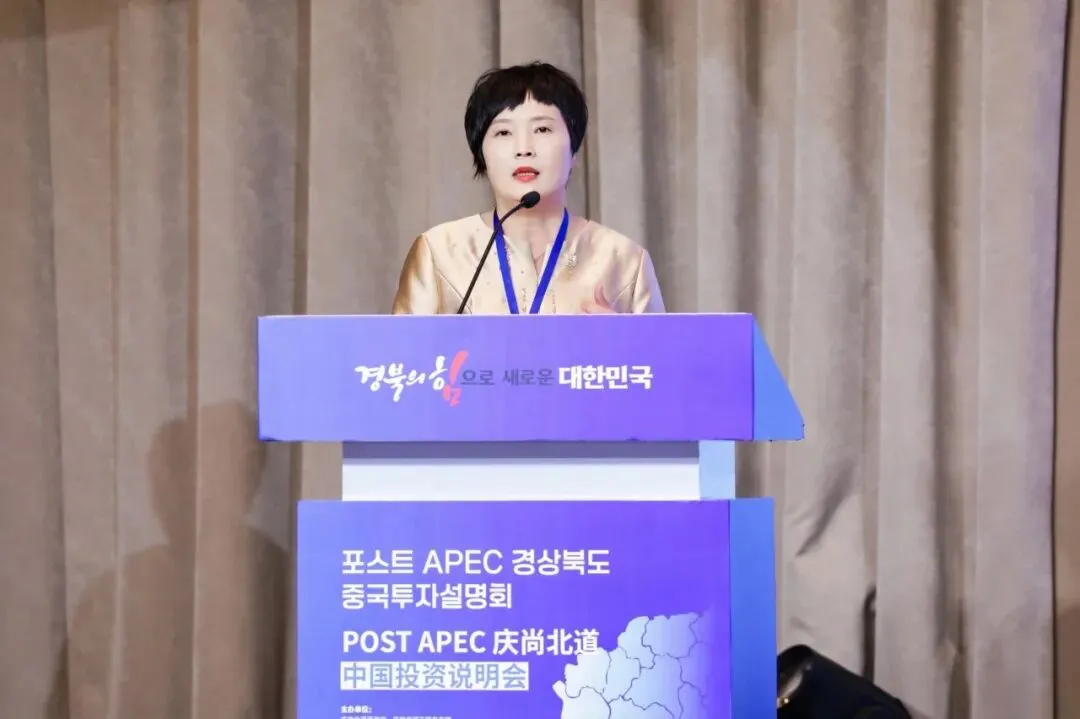 POST APEC庆尚北道中国投资说明会在这里举行。会场内,中韩两国企业代表齐聚一堂,翻译耳机里的声音此起彼伏。