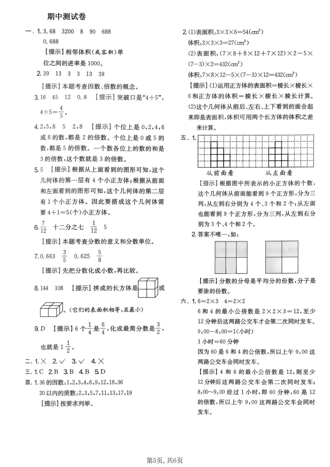【电子版】五年级下册数学期中拔尖测试卷(附答案),保存打印提前测试~