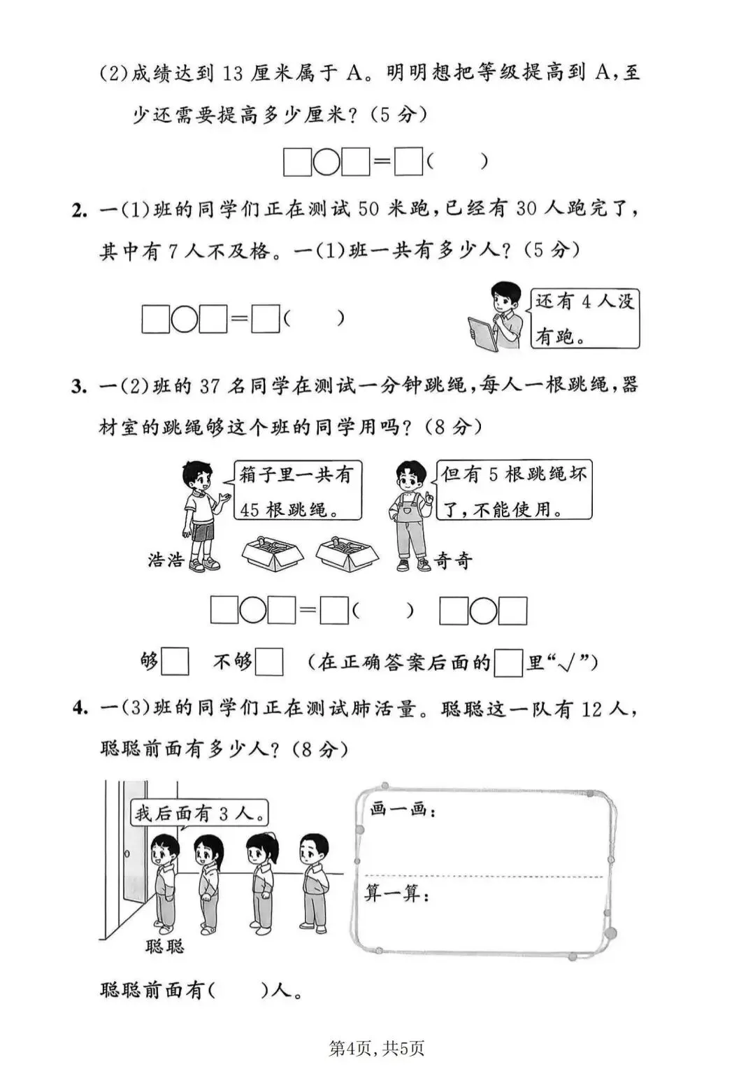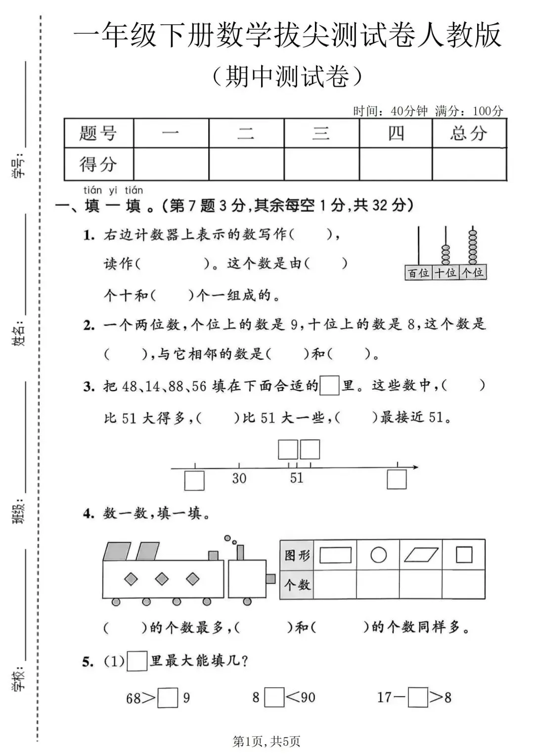 【完整版】2026一年级下数学人教版期中拔尖测试卷(有答案,可打印)