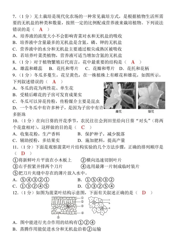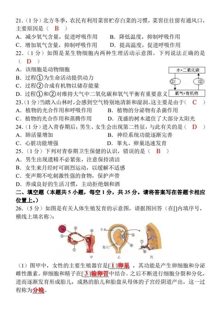 26春七年级下册生物期中模拟卷2套(完整电子版可打印)