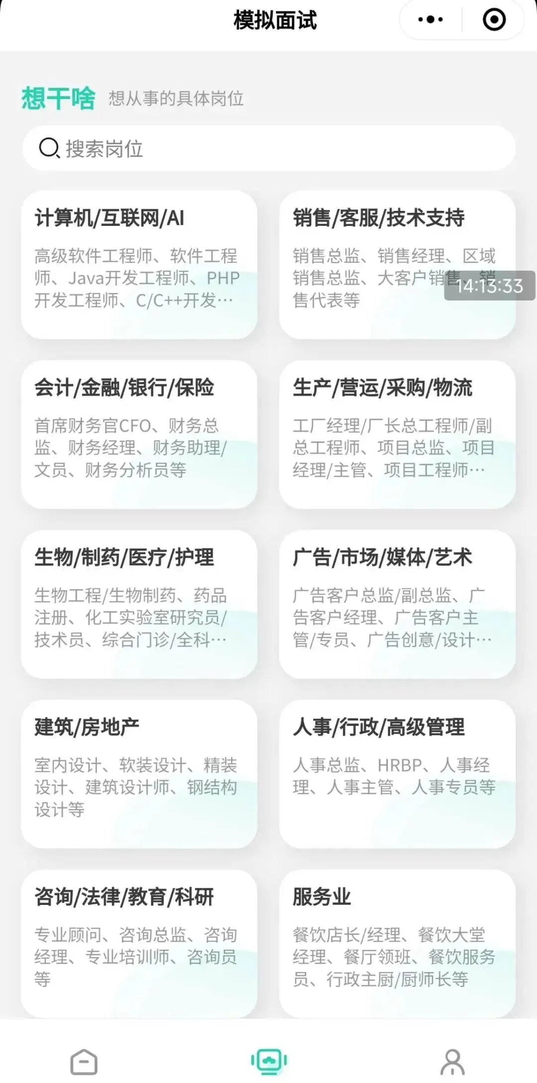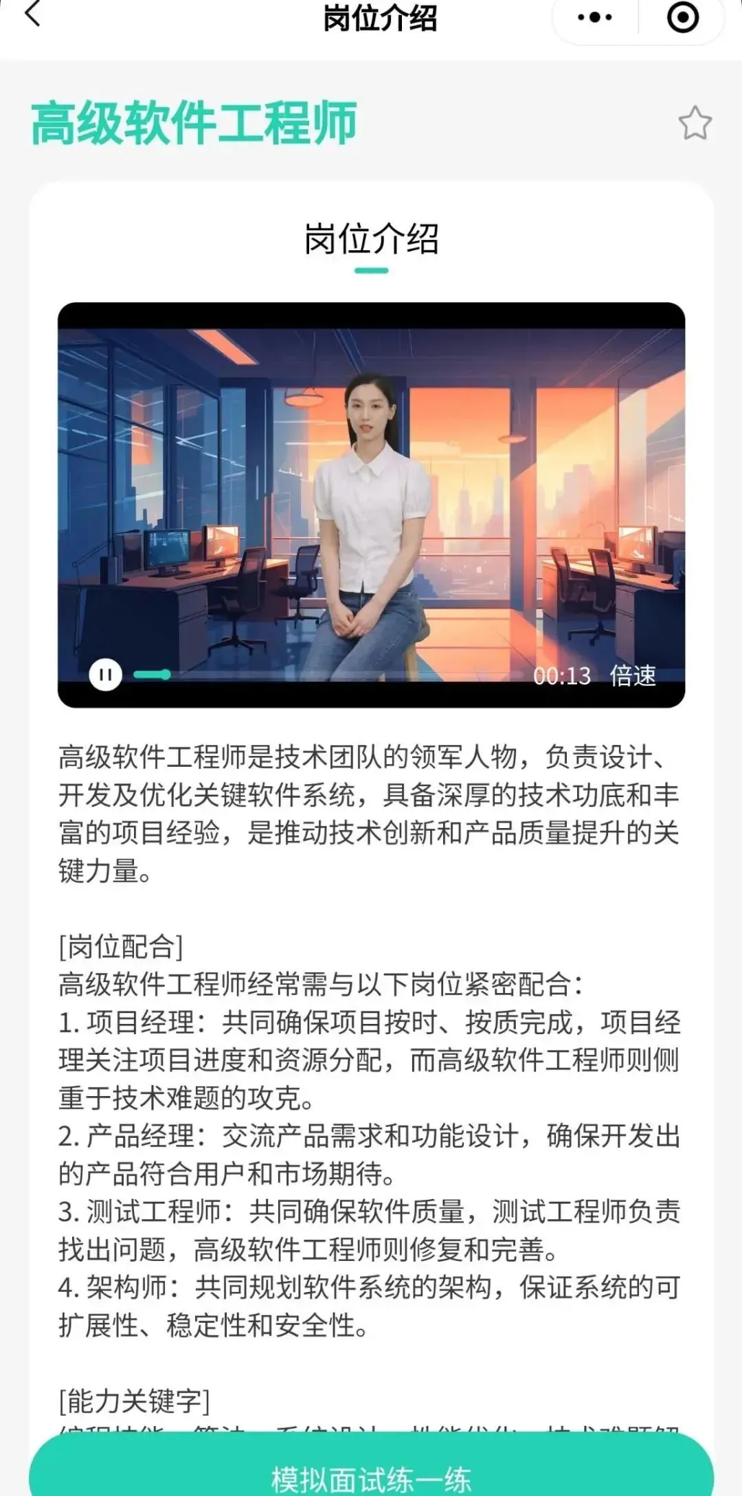 面试后,AI智能匹配相对应的岗位让面试者进入实战演练。