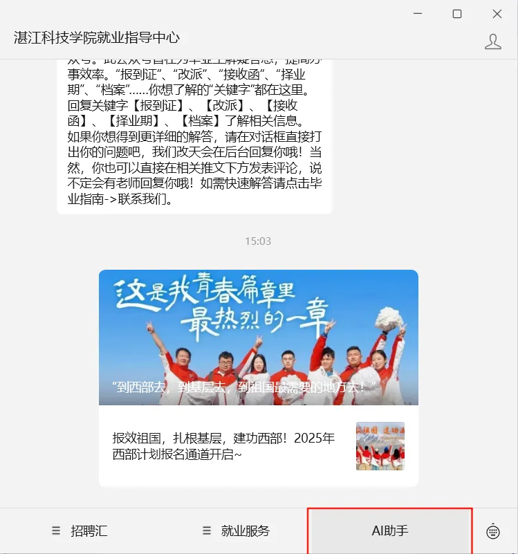 AI就业赋能 | DeepSeek智能就业助手正式入驻湛江科技学院就业平台