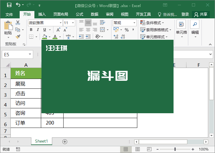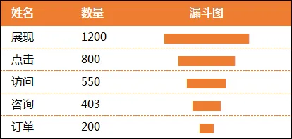 漏斗图表在制作上是与条形图差不多的,只是多了一个居中对齐。在公式上我加了一个“/10”是因为默认情况下数据条太长影响效果,除以十会缩短一点。