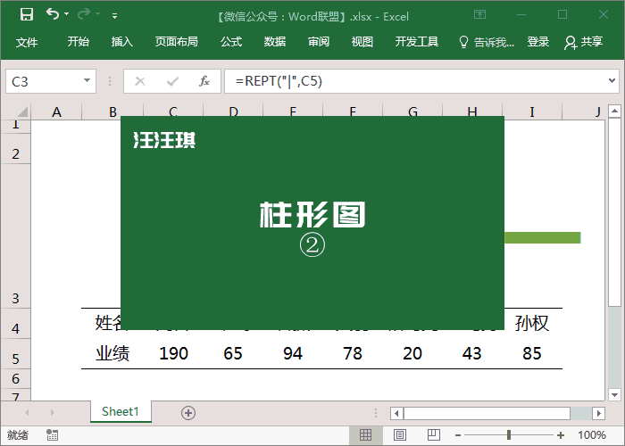 此时我们能够看到单元格中已经被竖线“|”填充满了,我们只需要更换一下字体颜色,条形图就算是完成了。如果你不喜欢默认竖线这种效果,可以将字体换成「Playbill」就变成实心的了。