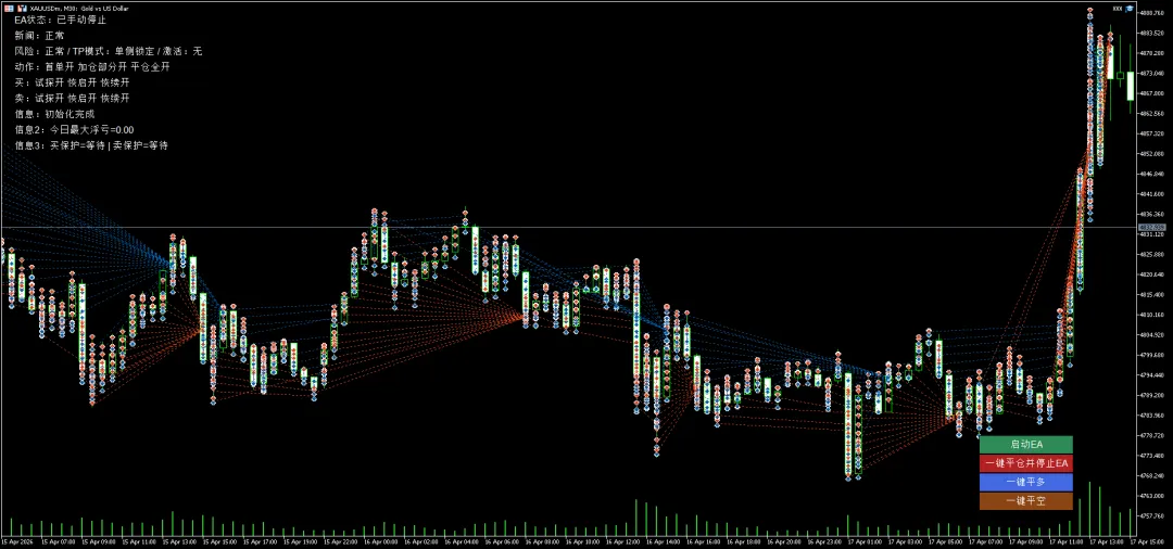 一般行情在日间启动,没有特殊情况,夜间也可以启动,我们是有账户5*24小时运行,周五停盘前必须停止,禁止留仓过周末。