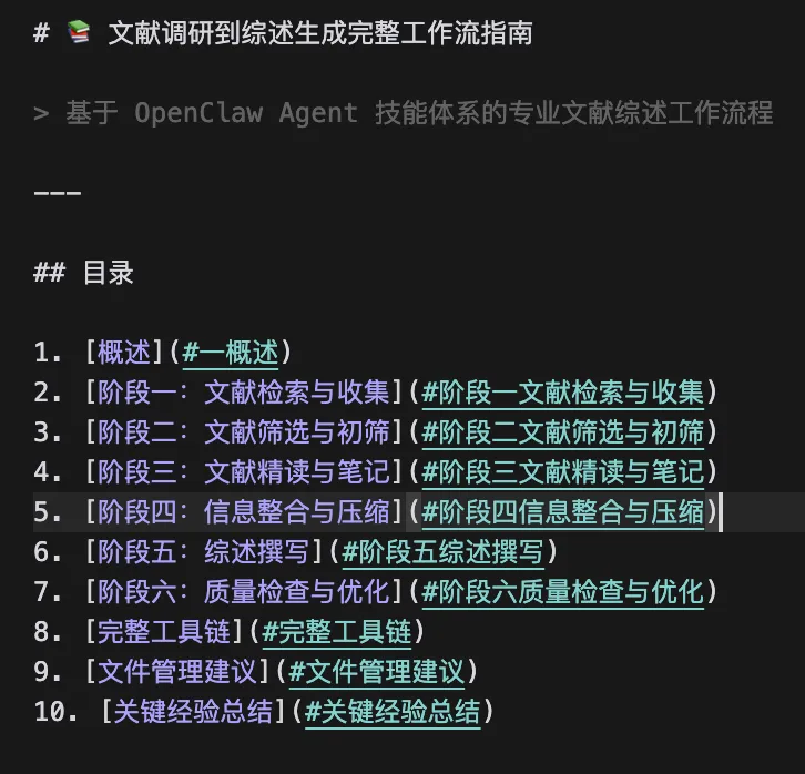 因此,在ai的协助下,生产出了以下从检索到综述生成的skill,可以帮助研究者用ai综述替代大量的文献检索。