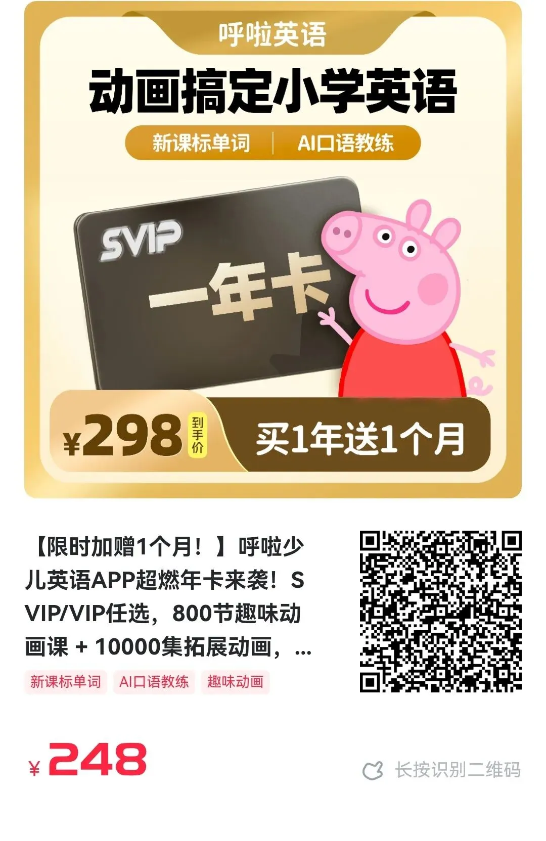 【限时加赠1个月!】呼啦少儿英语APP超燃年卡来袭!