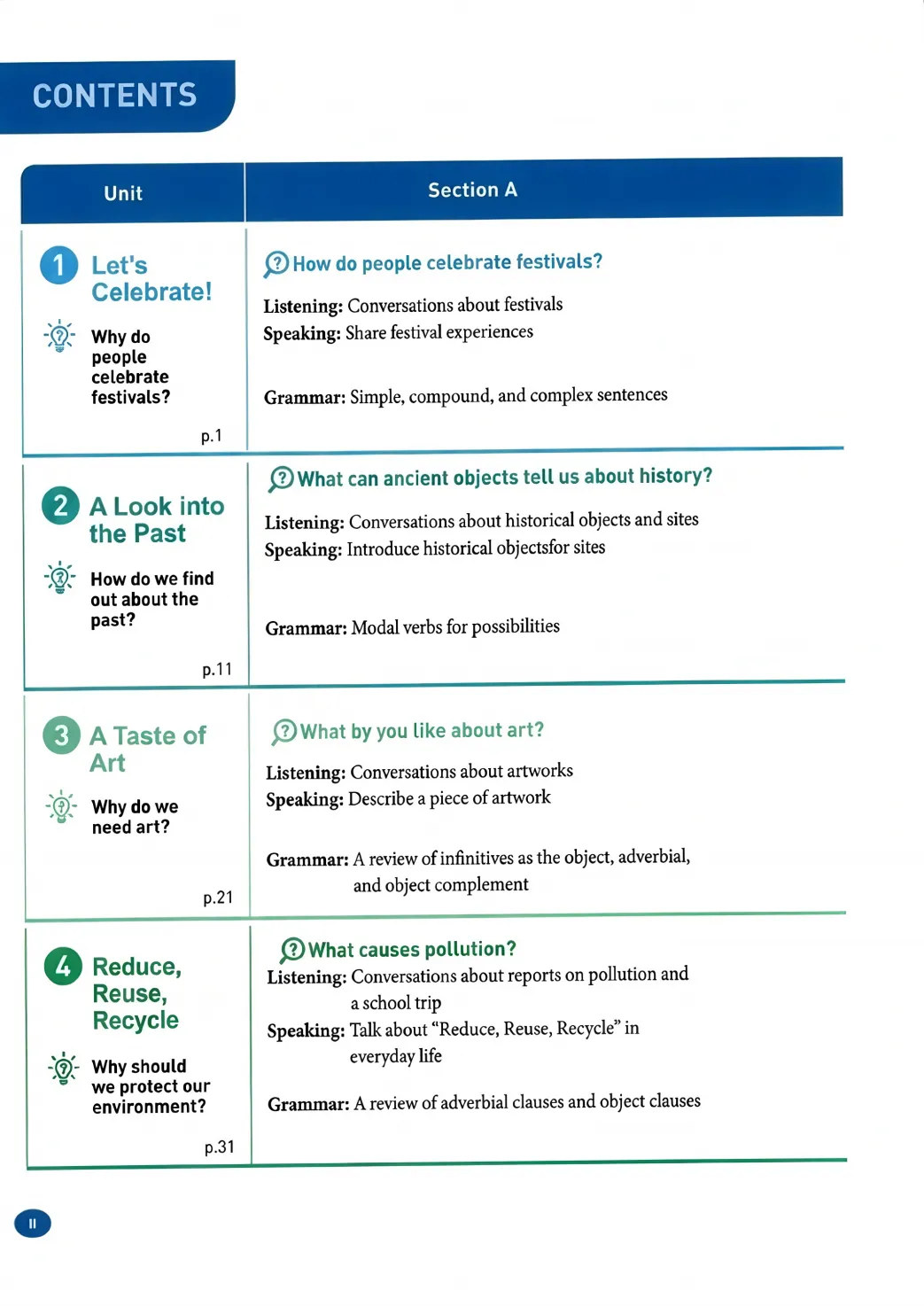 新九上8个单元目录: