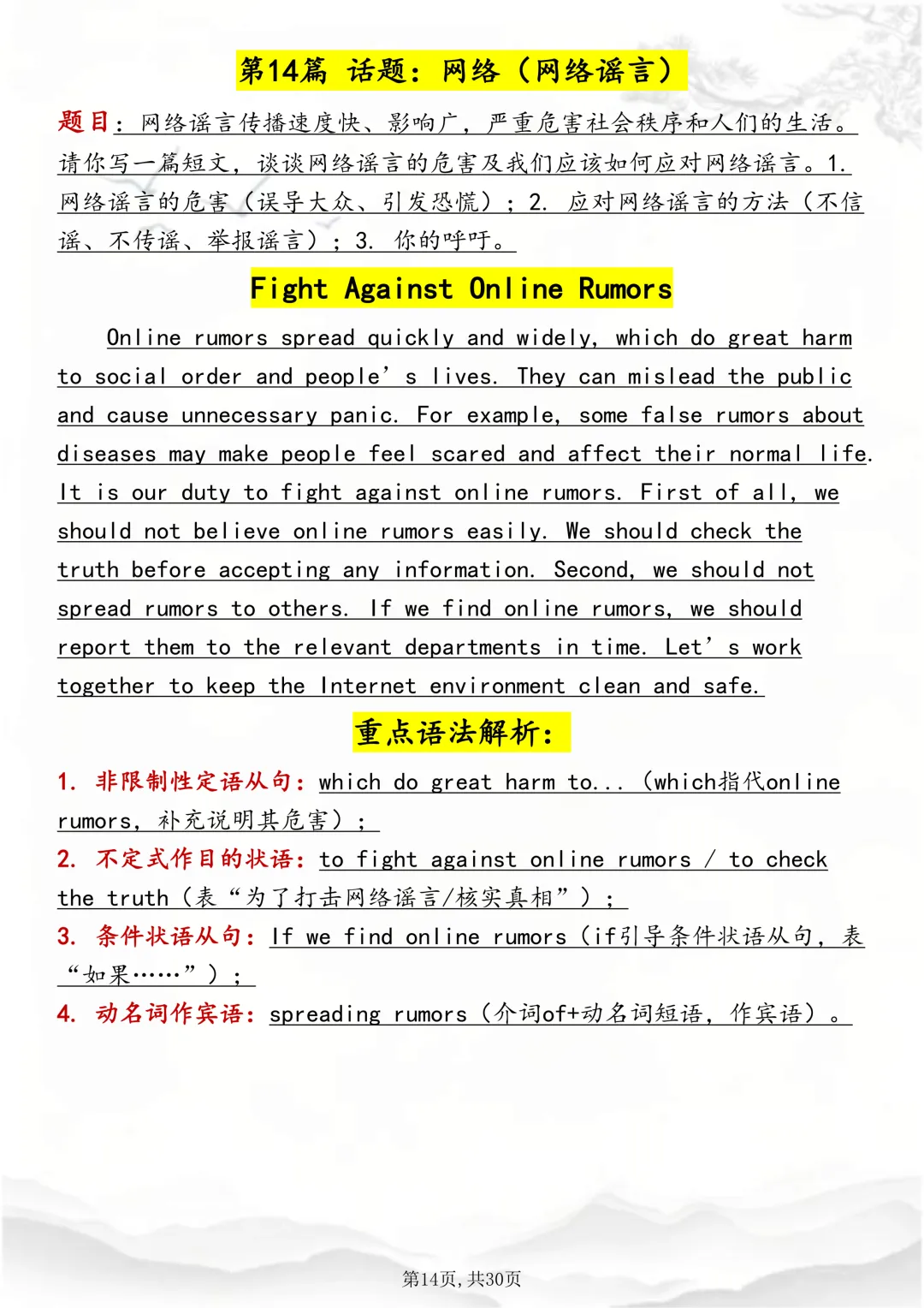 本篇文章一共 30 页,完整版可打印↓↓↓