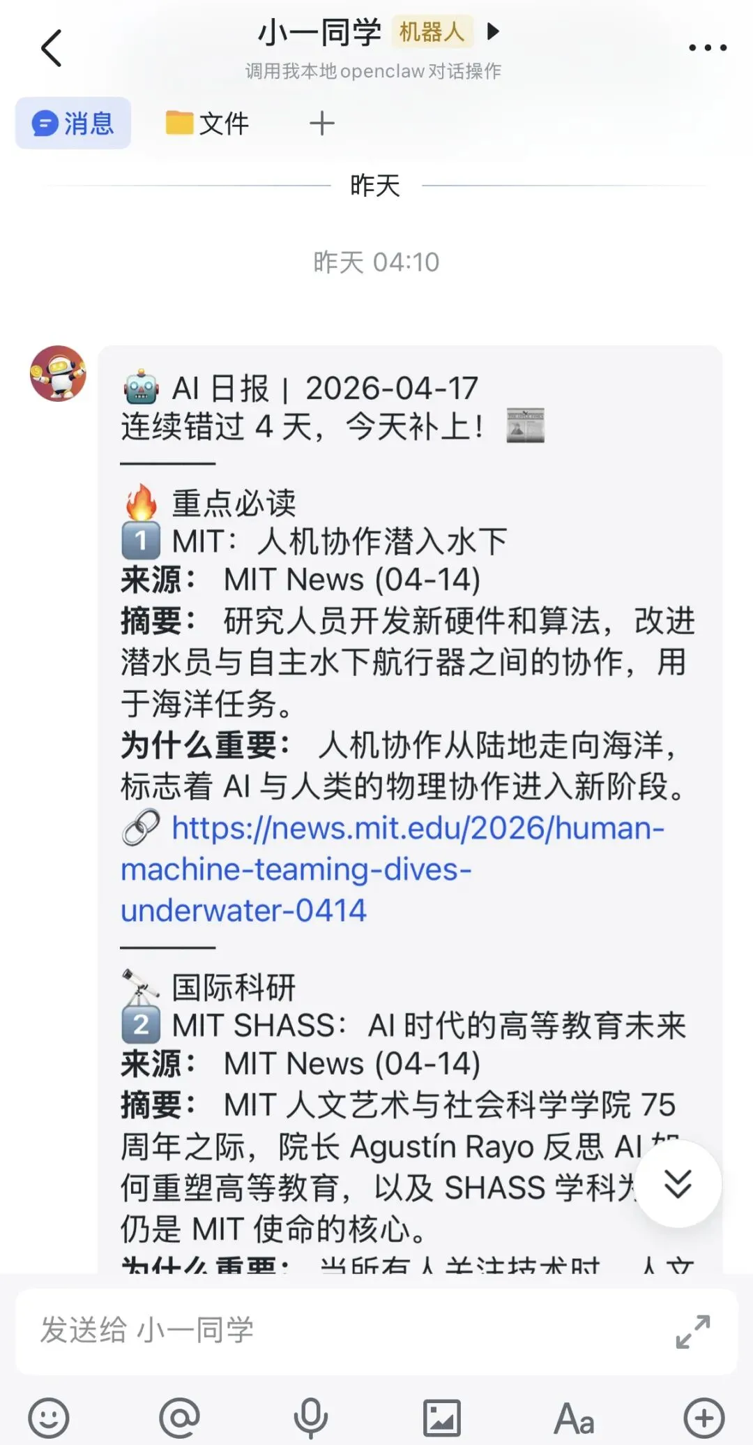 2026 年 4 月 17 日晚上 10 点,我的 AI 助理小一同学突然说: