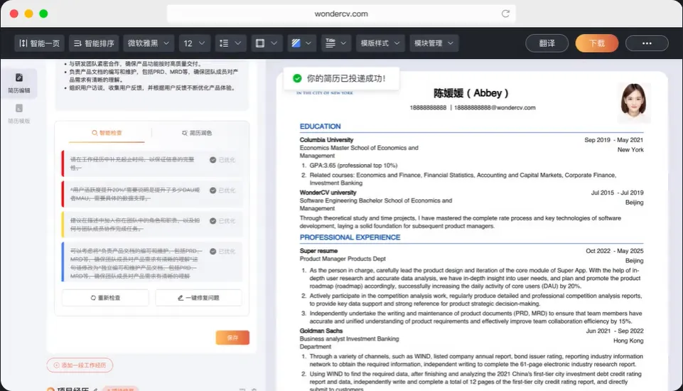1️⃣ 超级简历 WonderCV ⭐⭐⭐ 强烈推荐