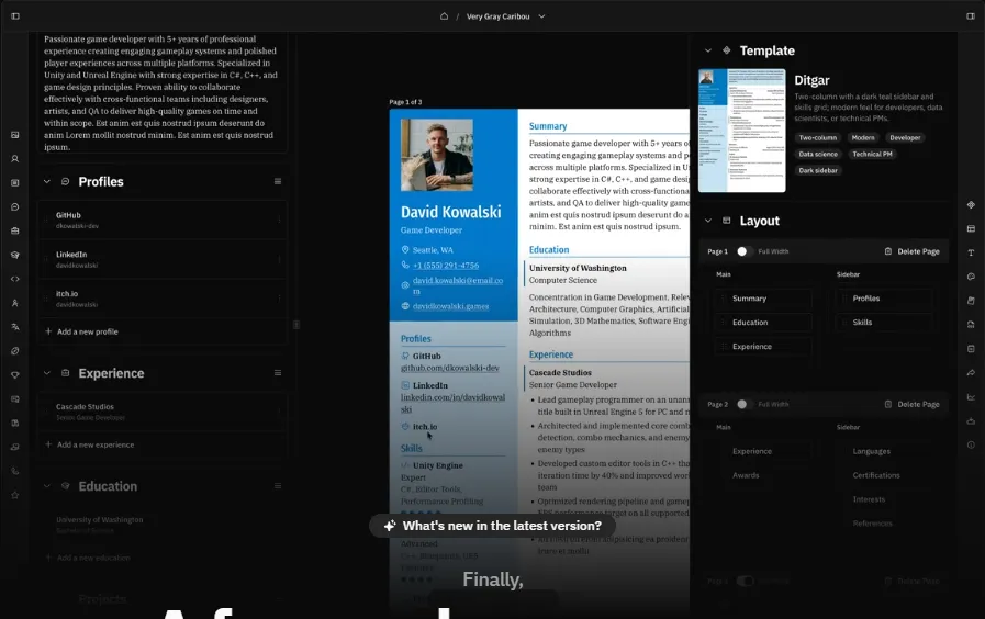 2️⃣ Reactive Resume ⭐⭐⭐ 开源免费之王