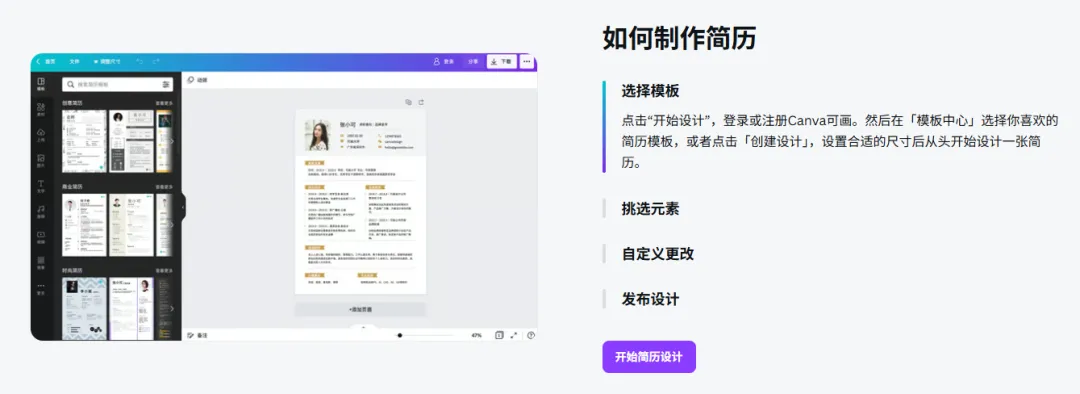 官网:canva.cn/create/resumes/