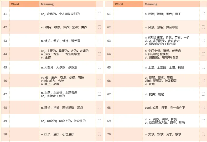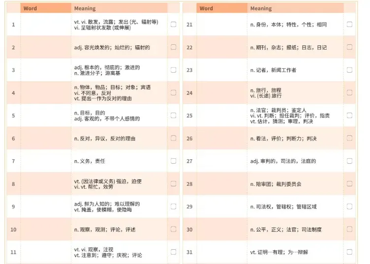2027考研英语《红宝书》全套PDF电子版+音频 每次背红宝书的时候,我都会在艾宾浩斯本上做标记。 完全记住的,我打✅。 完全没印象的,我打❌。 有点印象但说不准意思的,我画⭕。 第1遍背完,我把❌和⭕的单词圈出来。第2天复习的时候,我就重点看这些圈出来的词。第2遍背完,再把新出现的❌和⭕圈出来。第4天继续这样。5轮下来,每个词都被我反复看了很多遍。 2027考研英语《红宝书》全套PDF电子版+音频: https://pan.quark.cn/s/d80a658f0817