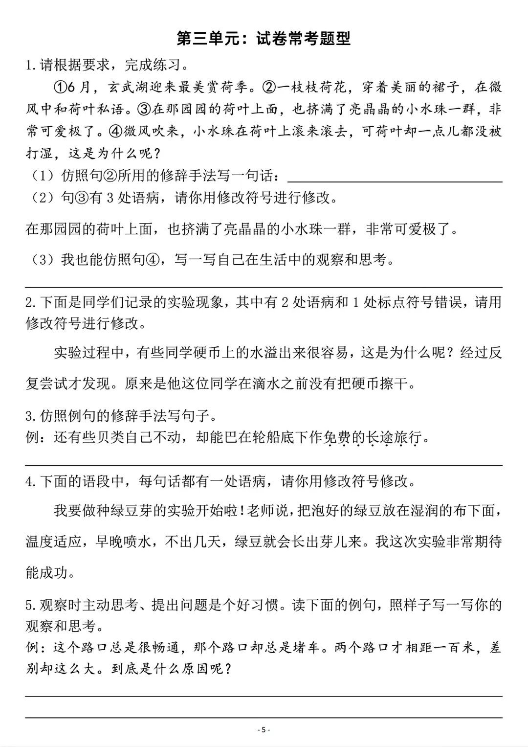 【免费下载】新三年级下册语文1-8单元句子专项突破训练可打印,PDF电子版