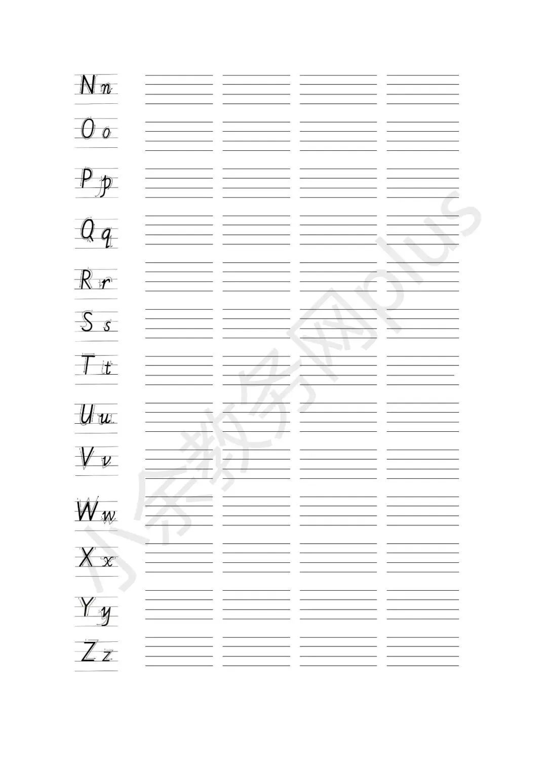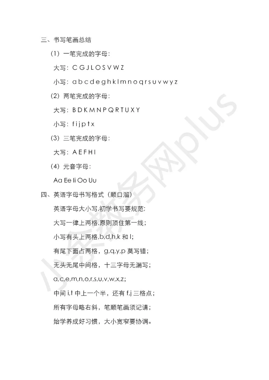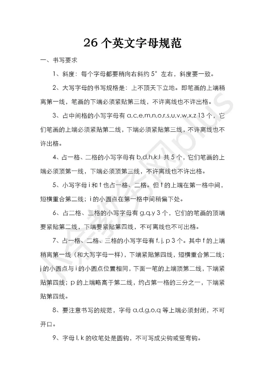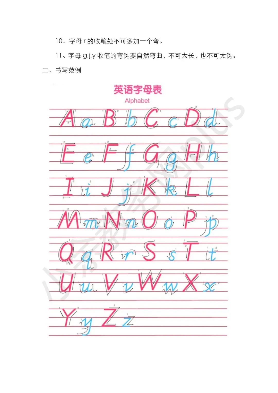 幼儿园手写体英文字母的书写规范说明及练习