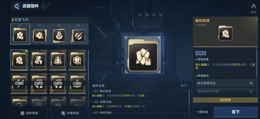 解构装填的效果是敌人破盾后,为当前武器填充100%的弹药并且可以过充。
