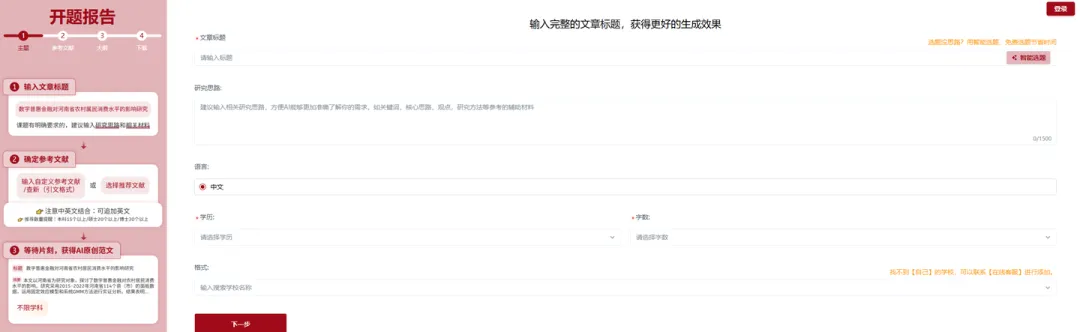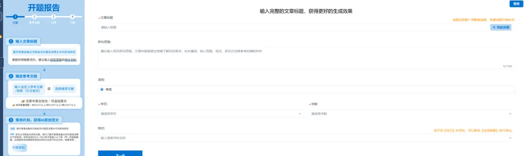 开题框架规范且全面,AI自动搭建“研究背景与意义、文献综述、研究内容、研究方法、研究进度、创新点”六大核心模块,完全贴合开题报告的学术要求,避免模块缺失、重点模糊的问题,减少导师修改工作量,提升开题通过率。 -