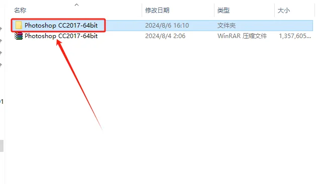 3.打开解压好的【Photoshop CC2017-64bit】文件夹。
