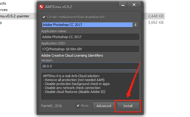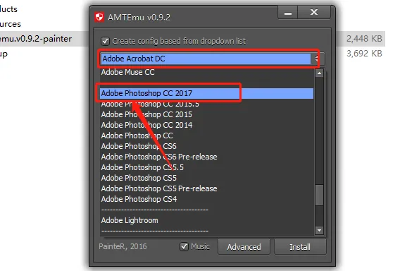 10.点击注册机第一个选项框,然后下拉选择【Adobe Photoshop 2017】。