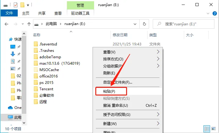 22.打开一个你需要安装在此的磁盘,然后鼠标右击选择【粘贴】。