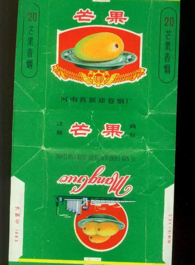 图里这个绿色烟标,黄橙橙的芒果画在盘子上,看着就很招摇,河南新郑烟厂出的,老烟民一提芒果都点头,说这东西抽着带点果香,可不冲头,学生娃有时候也躲着抽两口,入口甜,外地亲戚来了都喜欢带上一包,说是“回去送朋友稀罕”。