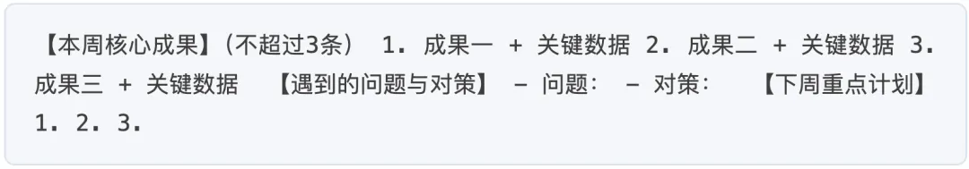 有了这个模板,写周报就变成填空,10分钟之内搞定,而且每次都不会遗漏重点。