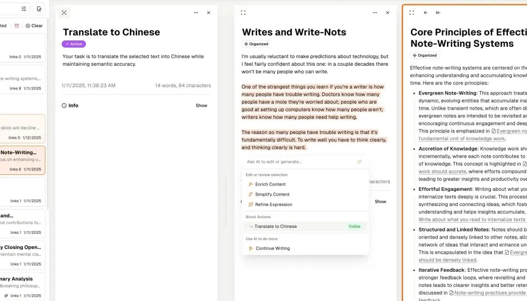写作变得更快, 思考变得更深, 结构变得更清晰, 进入状态变得更容易。
