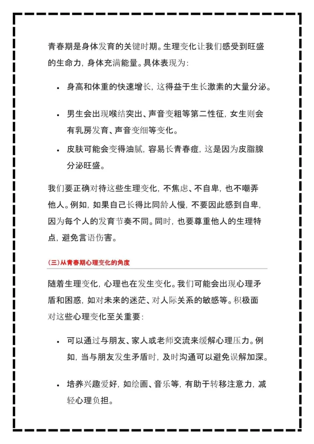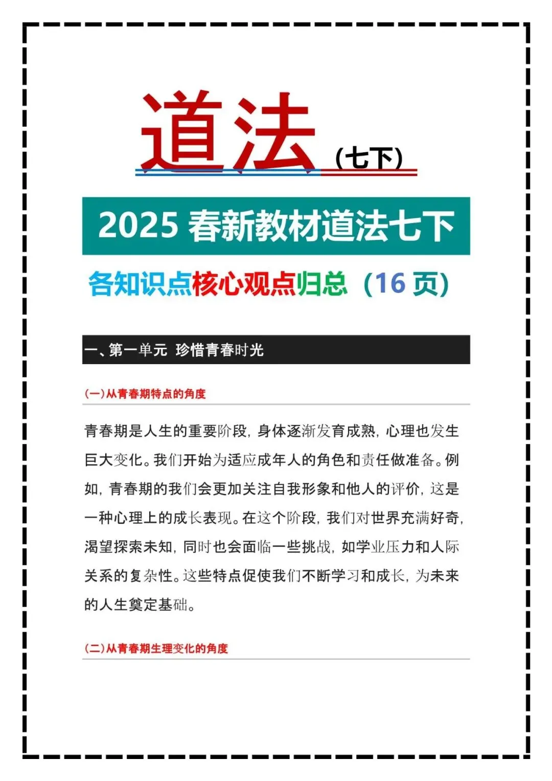 今天老师给大家整理了:新版七下道法|考点一句话总结,电子打印版!