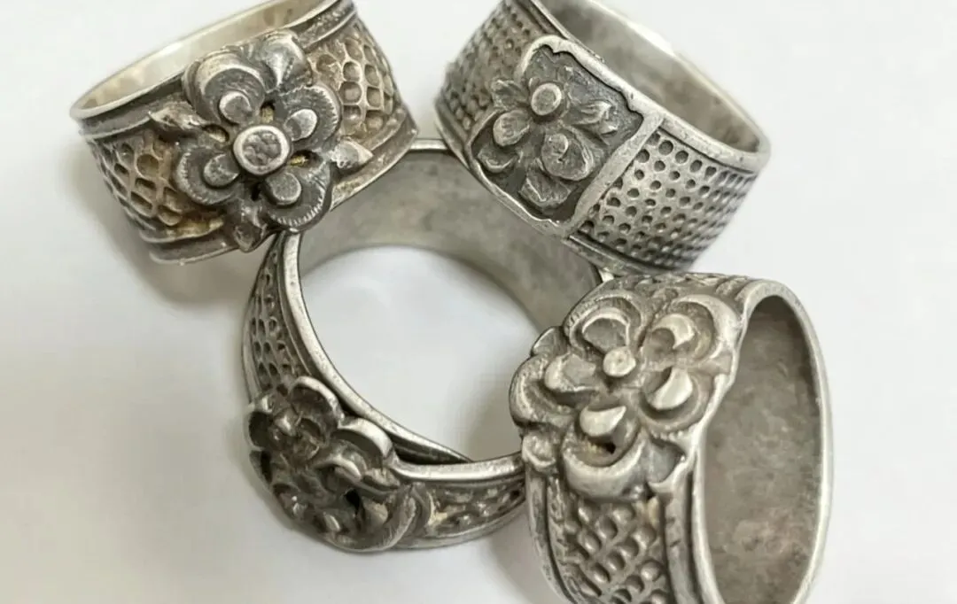 这几枚银戒指堆在一起,花纹繁复得像是要把福气都锁住,银子这东西有个怪脾气,越戴越亮,越磨越润,上面的花朵图案都被手指肚磨得有些模糊了,那是长年累月干活磨出来的包浆,以前人手上没这么多装饰,戴个戒指也是为了图个吉利或者是个念想,金属的凉意被体温捂热了,就成了身上长出来的一部分,现在金店里的首饰亮得晃眼,却少了几分这种被人气养出来的温润光泽。