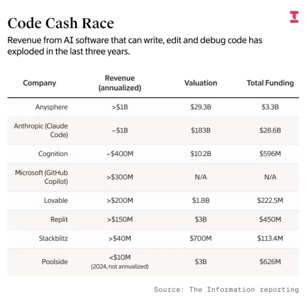 Cursor的爆发不是孤立的。它发生在AI编程工具这个赛道正在经历资本密集押注的背景之下。
