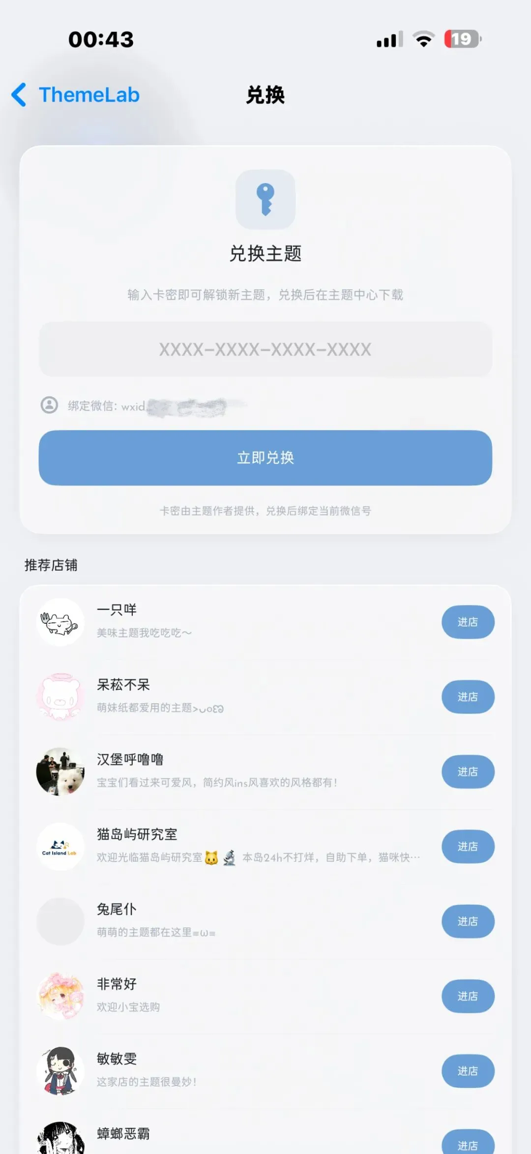 兑换主题界面 vd购买主题po主题后获取卷码在此界面兑换 无需输入微信ID 插件自动绑定 以免出现输错ID