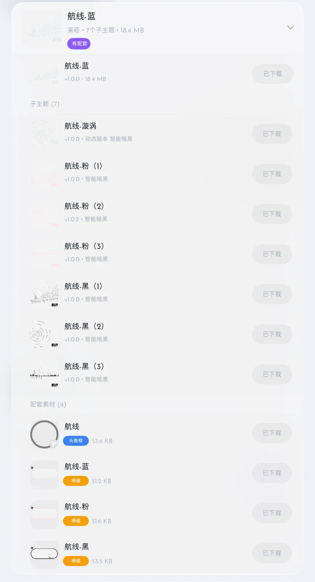 在主题下载界面显示配套素材和主题一样下载使用