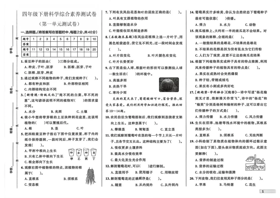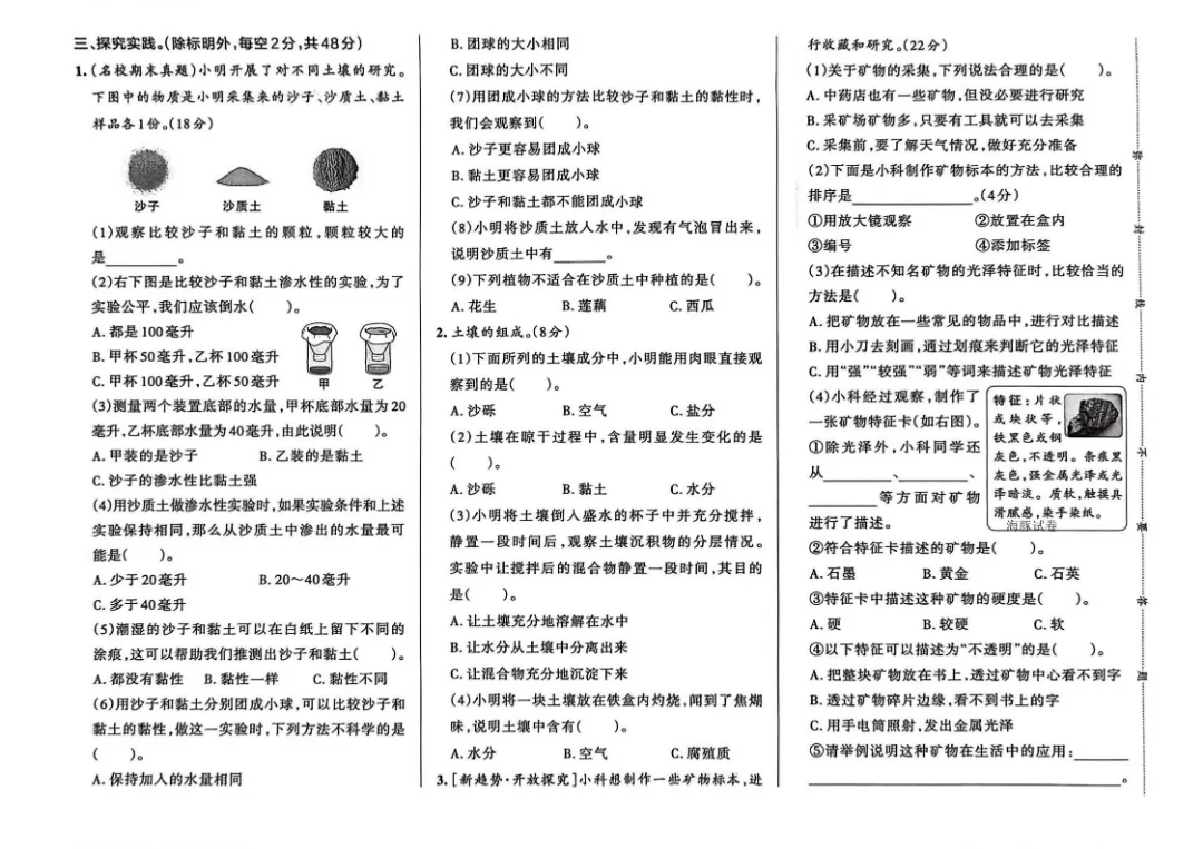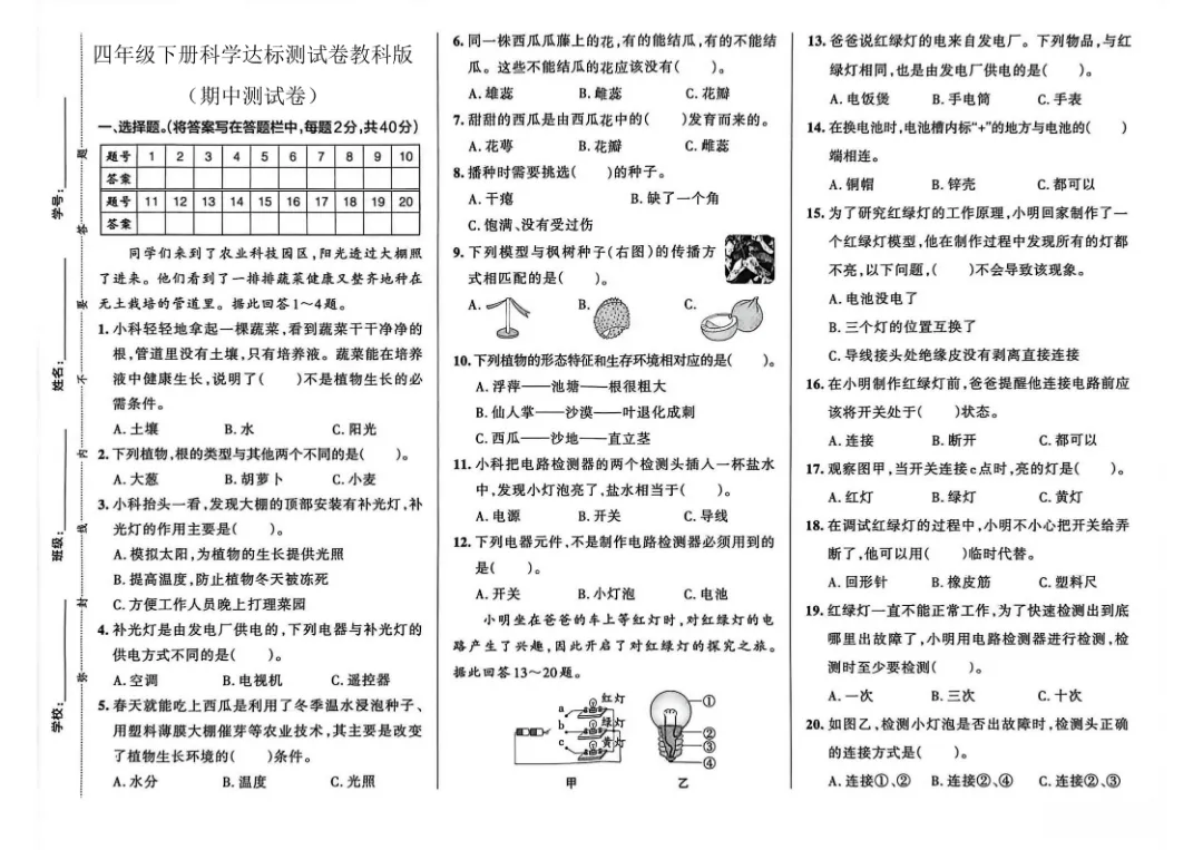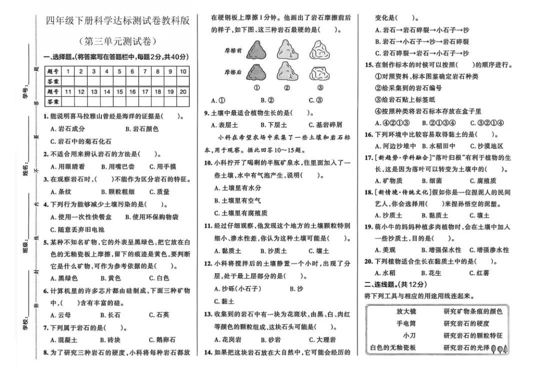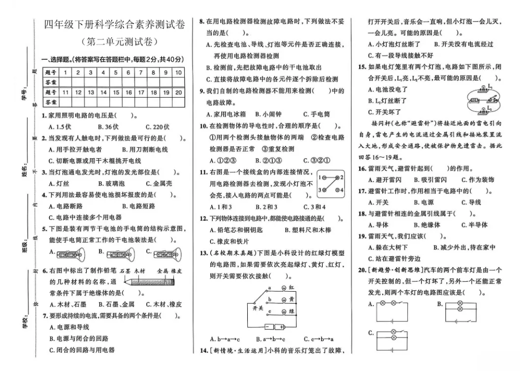 今天给大家分享的是:26春新版四年级下册科学【教科版】【第1-3单元测试卷+期中丨完整高清电子版可打印