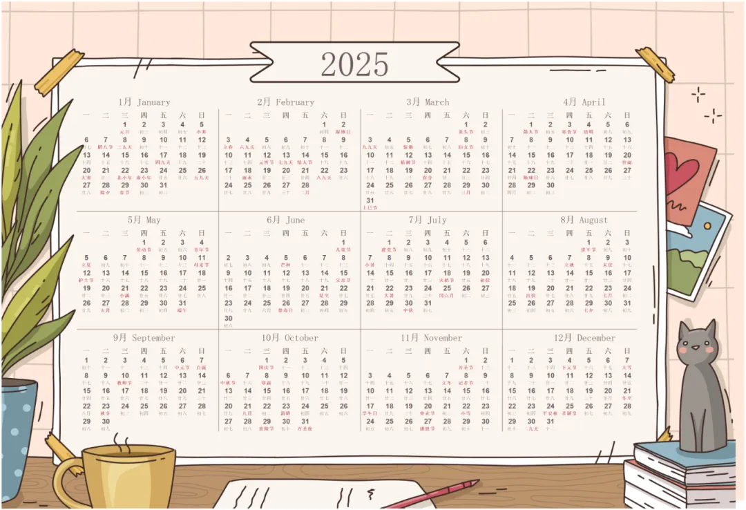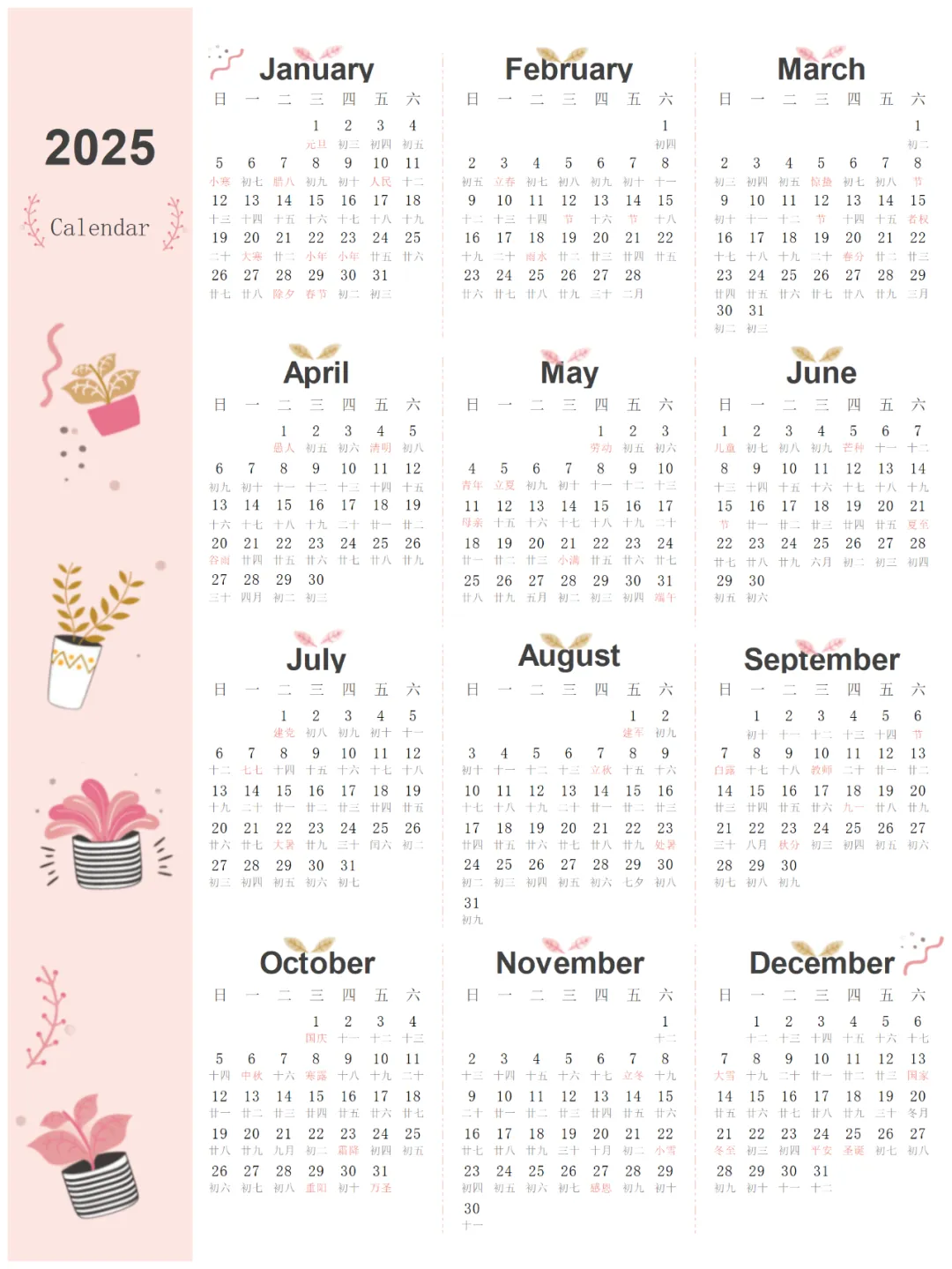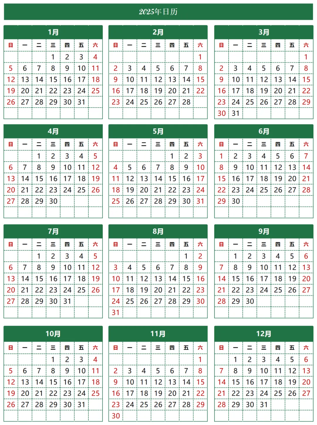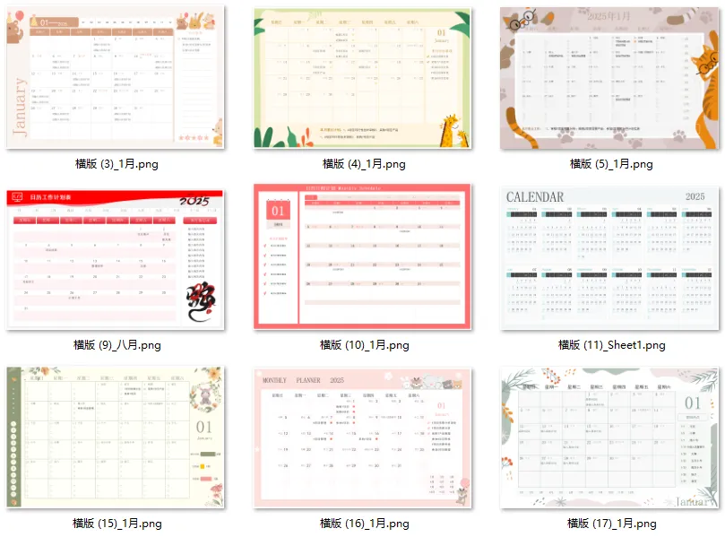 30套《2025年日历》电子版 Word Excel 模板年历月历工作学习计划 (可下载,可编辑,可打印)
