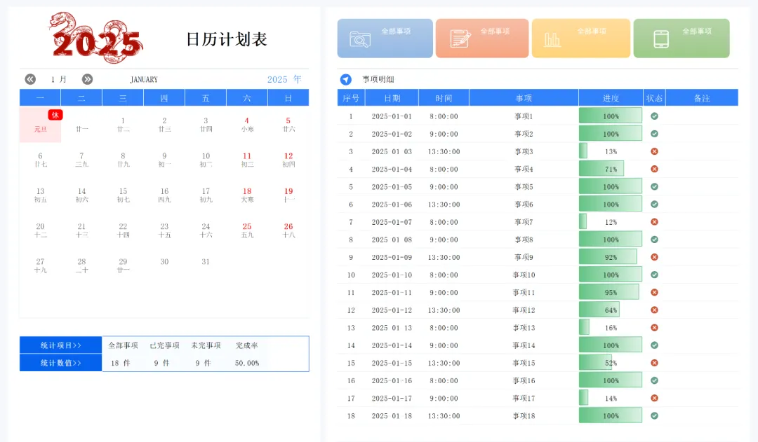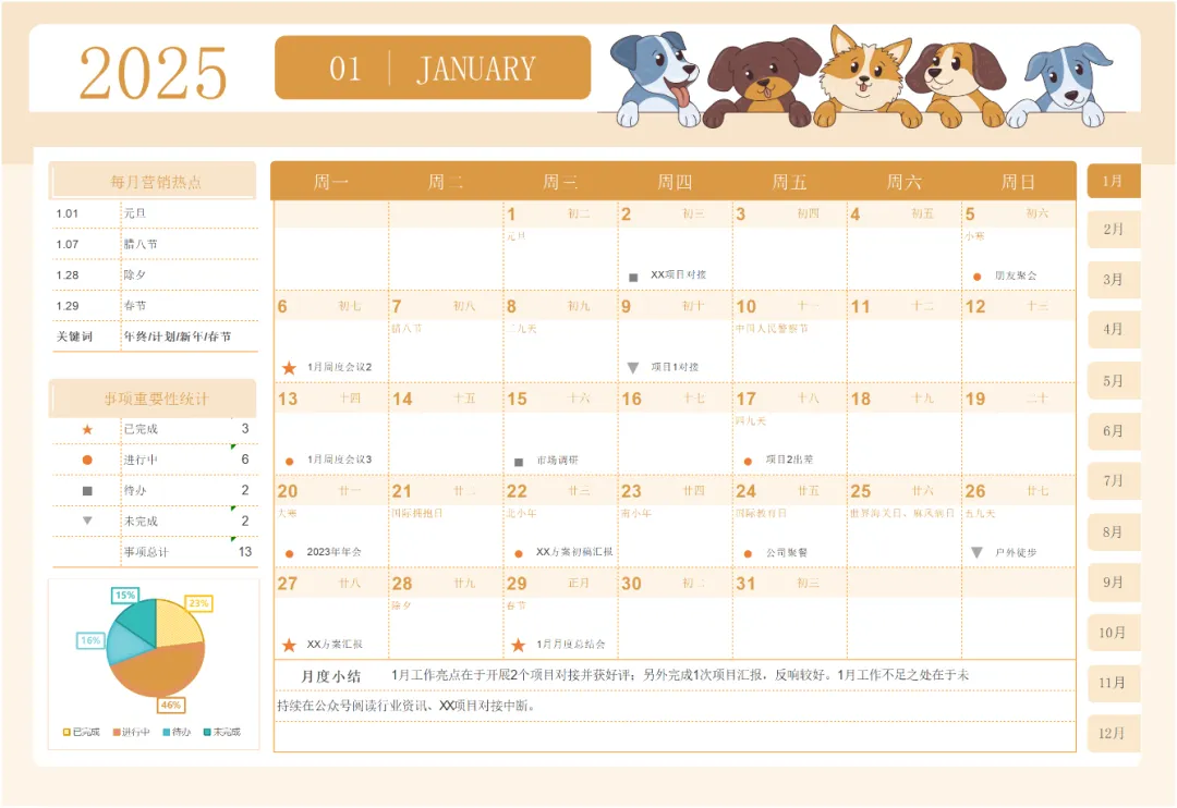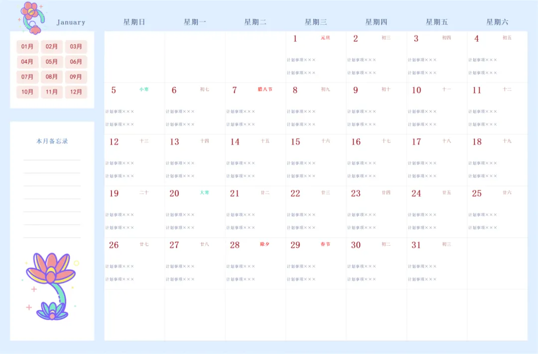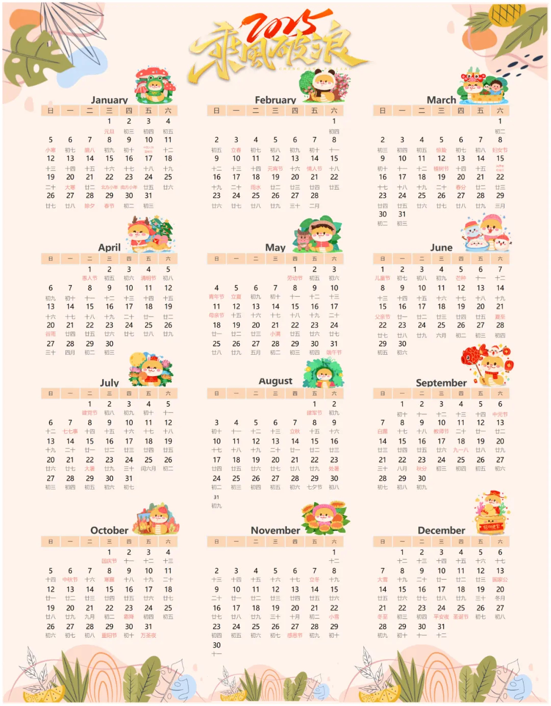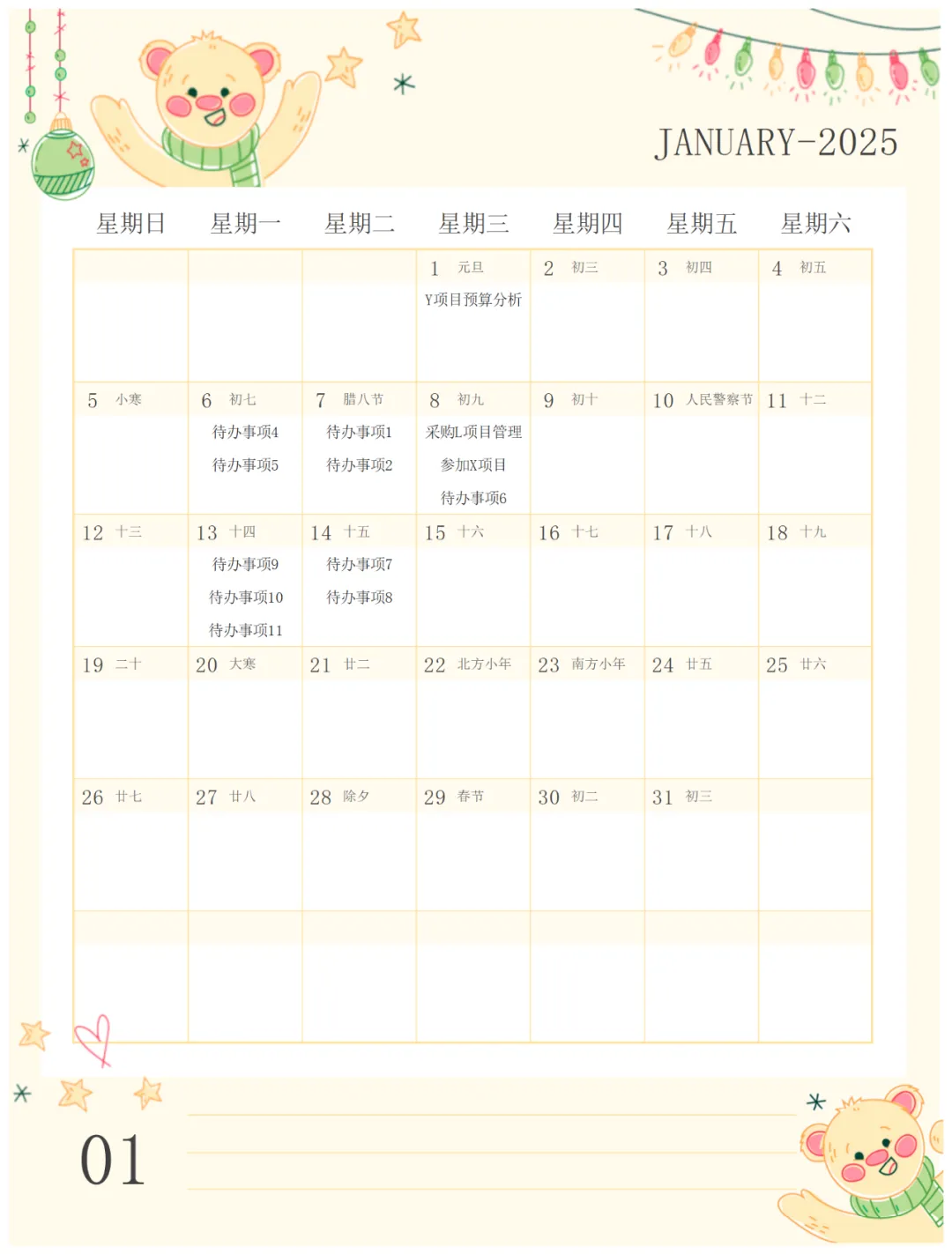 30套《2025年日历》电子版 Word Excel 模板年历月历工作学习计划 (可下载,可编辑,可打印)