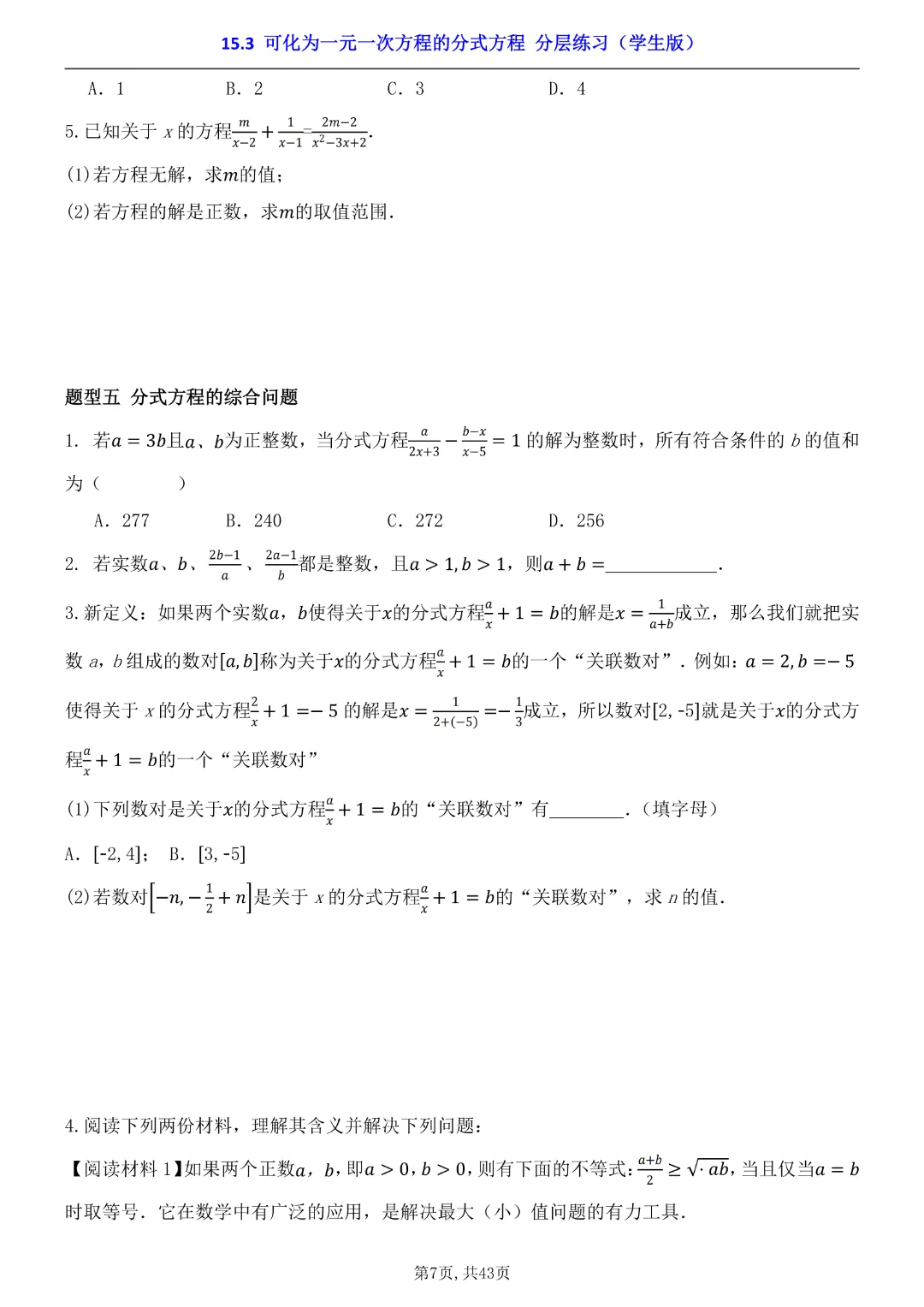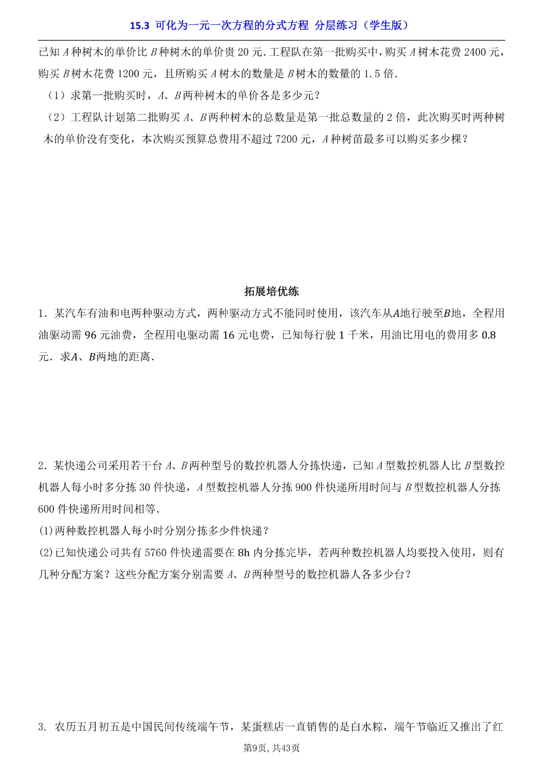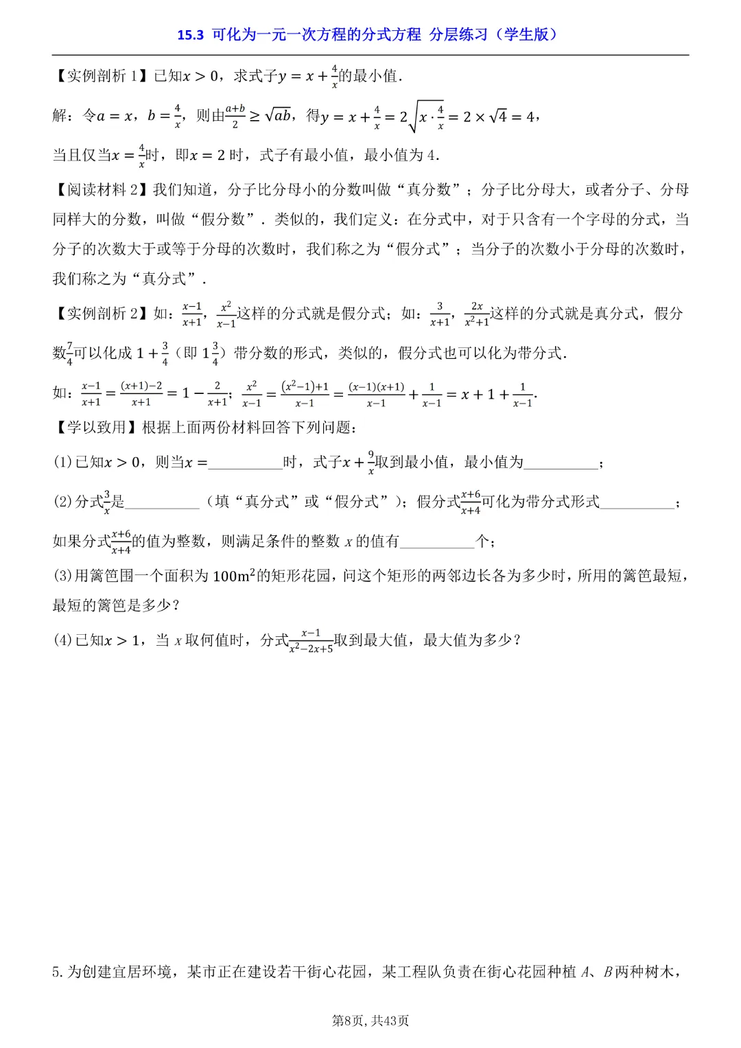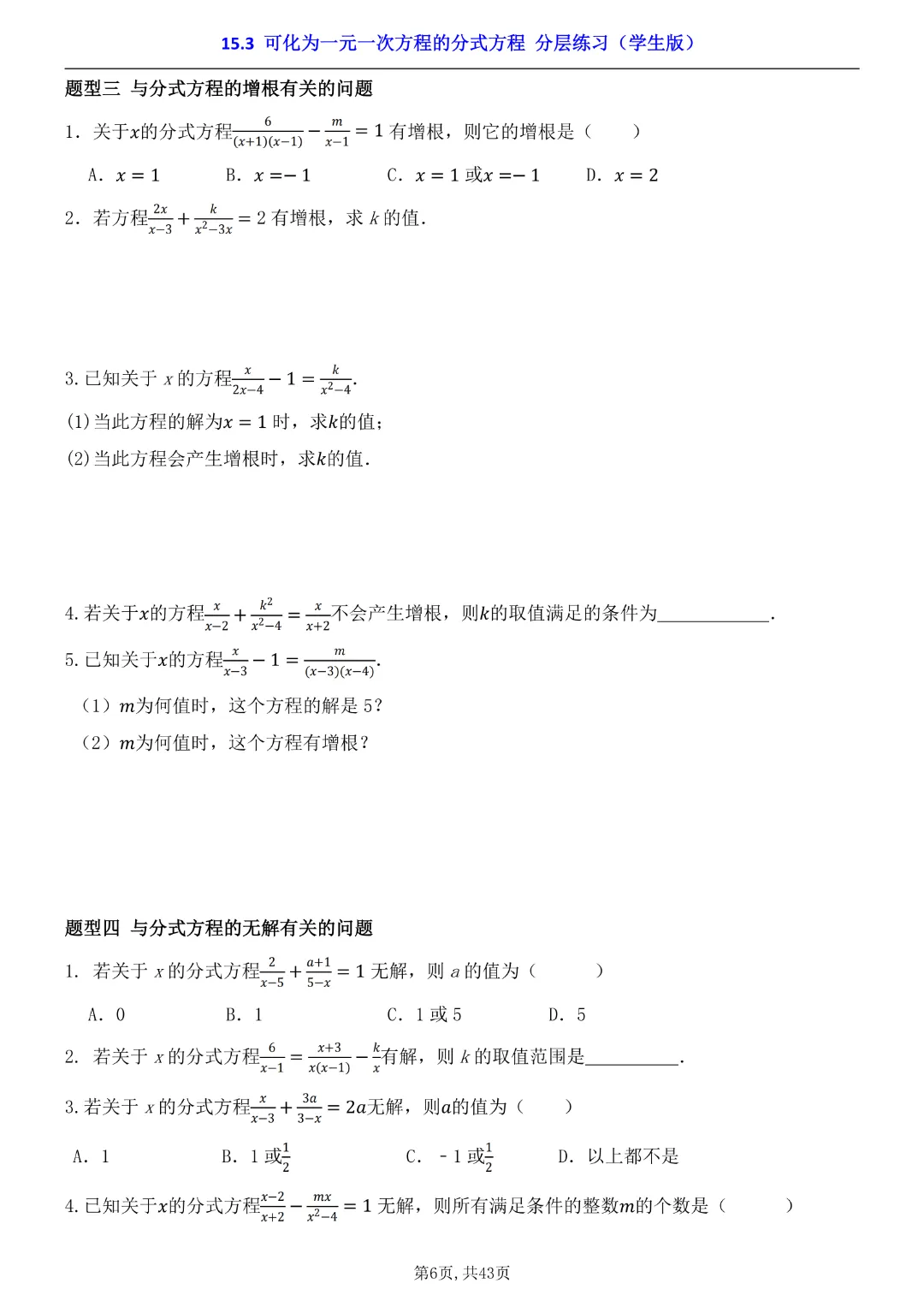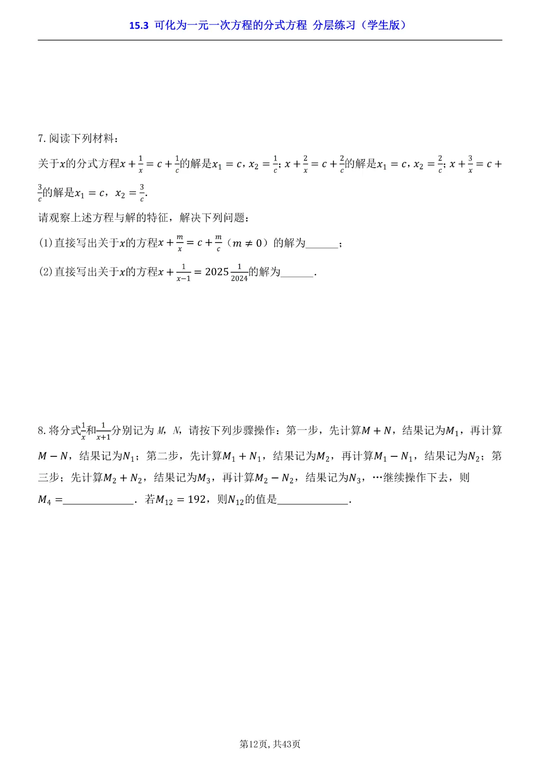 2026年八年级下册数学【15.3 可化为一元一次方程的分式方程 分层练习附解析】(华东师大版)高清电子版可打印