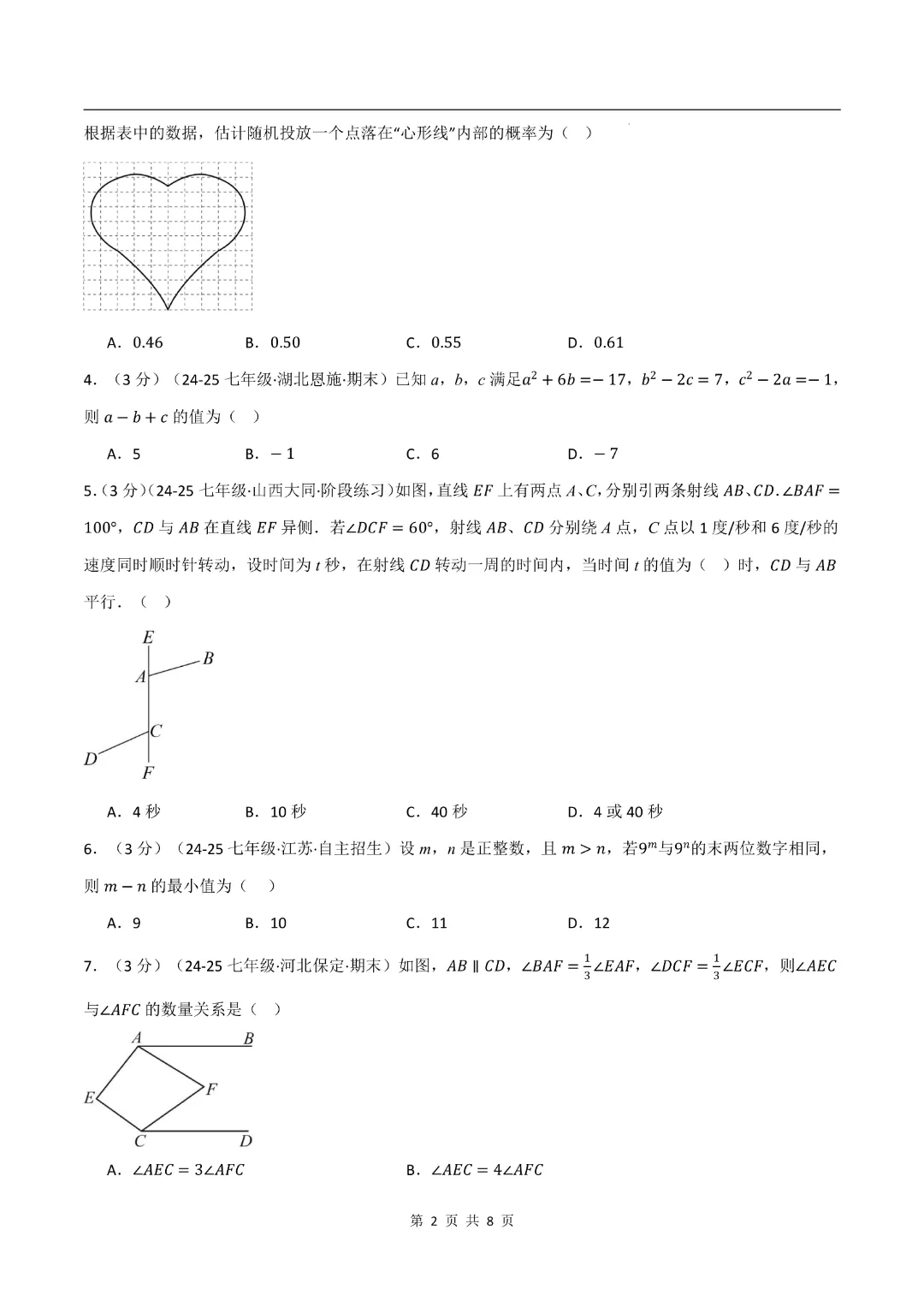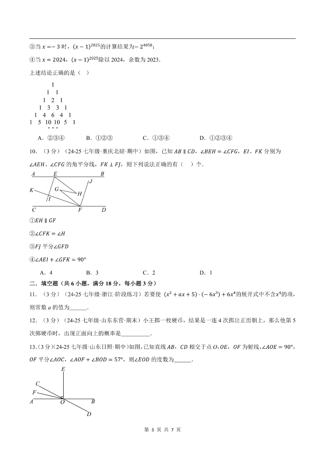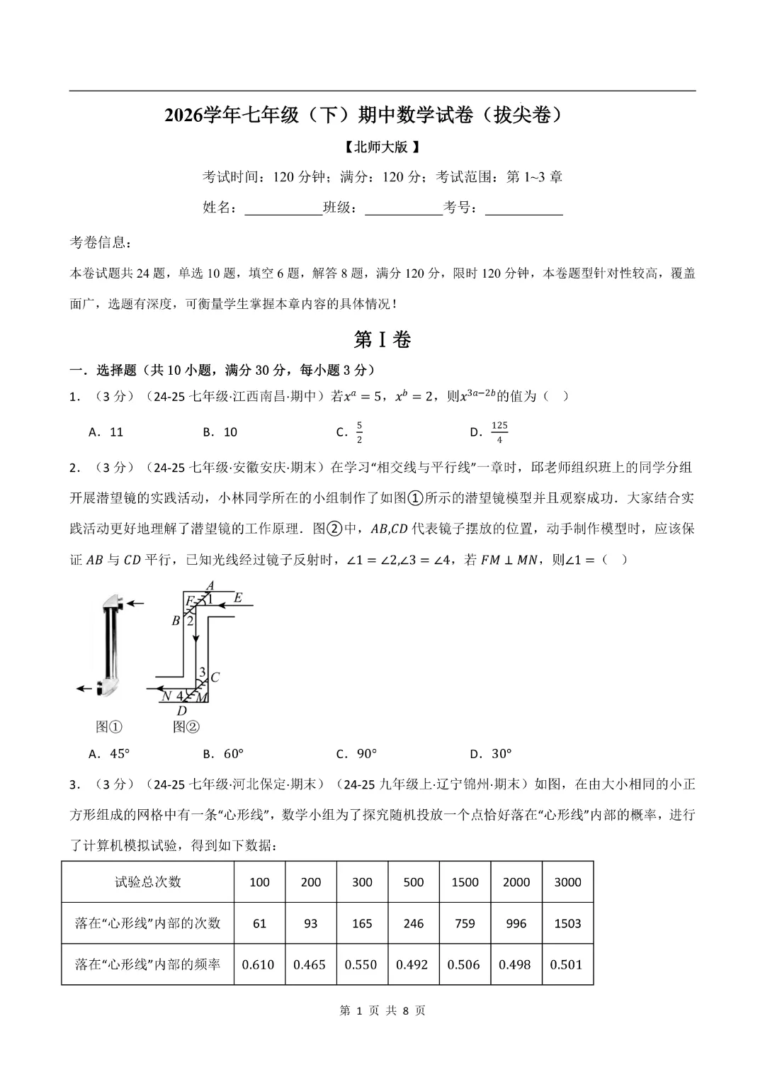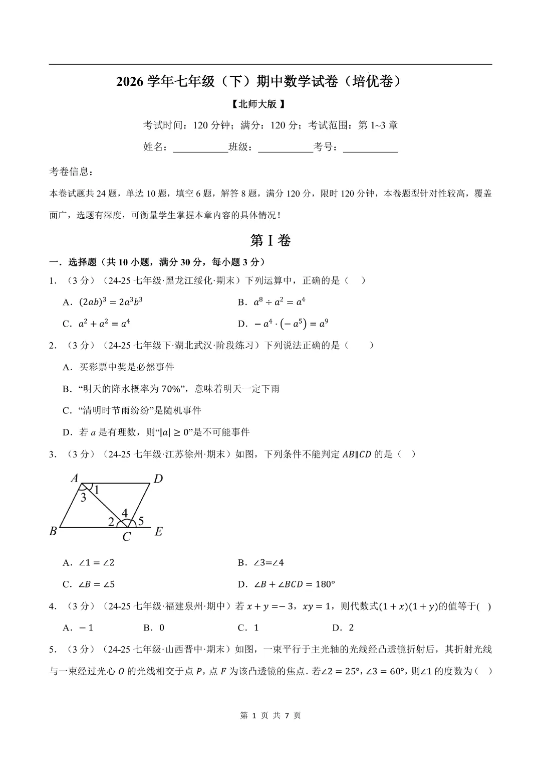 【2026春新版七年级下册数学】【北师大版】期中测试卷2套带答案|完整高清可打印
